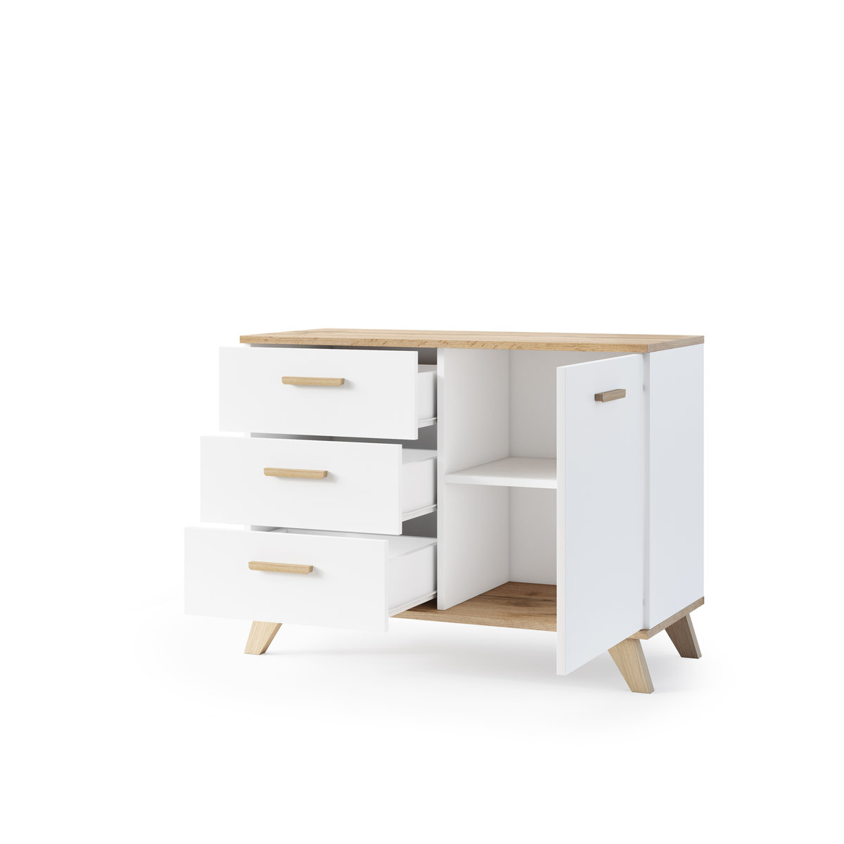 | Nazwa: | Komoda Scandi 100 cm 3 szuflady BIAŁY WOTAN |