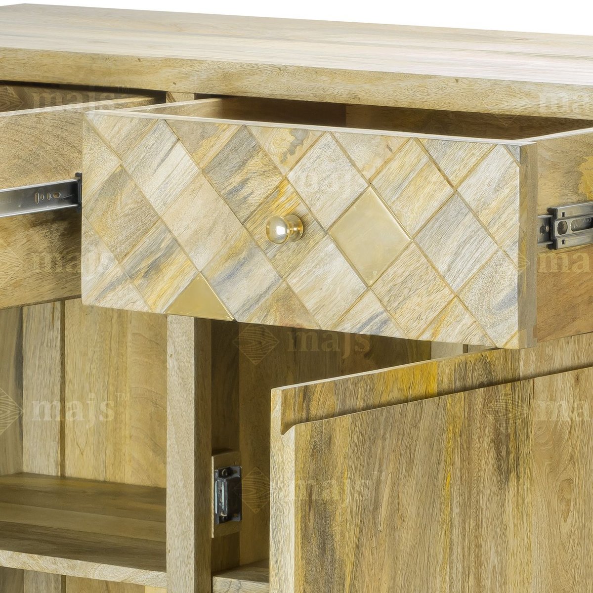 Drewniana komoda Suvali z litego egzotycznego drewna mangowca indyjskiego Komoda z 3 przestronnymi szafkami z półką oraz 3 pojemnymi szufladami. Wszystkie jej elementy tj. korpus, szuflady ...