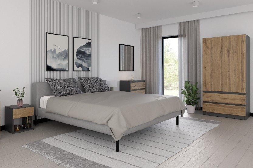 | Nazwa: | Komoda Szafka Antracyt Dąb Wotan 3 Szuflady Nowoczesna Do Salonu Sypialni |