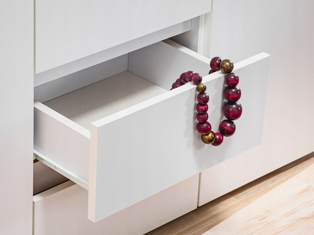 WYGODNE I PRAKTYCZNE OTWIERANIE FRONTÓWKomoda NATALIA została wyposażona w wygodny system bezuchwytowych frontów. ✨ Fronty bez uchwytów prezentują się bardzo elegancko i minimalistycznie, wpisując się tym w najnowsze trendy wnętrzarskie. W pełni wyeksponują urok frontu oraz całej szafki. ✨ Brak uchwytów sprawia, że komoda wydaje się bardziej przestronna, co jest szczególnie ważne w mniejszych pomieszczeniach. ✨ Czyszczenie frontów jest dużo przyjemniejsze niż w przypadku mebli z wystającymi uchwytami. Gładka powierzchnia jest łatwiejsza do utrzymania w czystości, brud nie gromadzi się wokół nich. ✨ Rozwiązanie te minimalizuje ryzyko zaczepiania się o uchwyty podczas codziennych czynności. Brak wystających uchwytów minimalizuje ryzyko skaleczeń lub zahaczeń, zwłaszcza w przypadku małych dzieci. | |