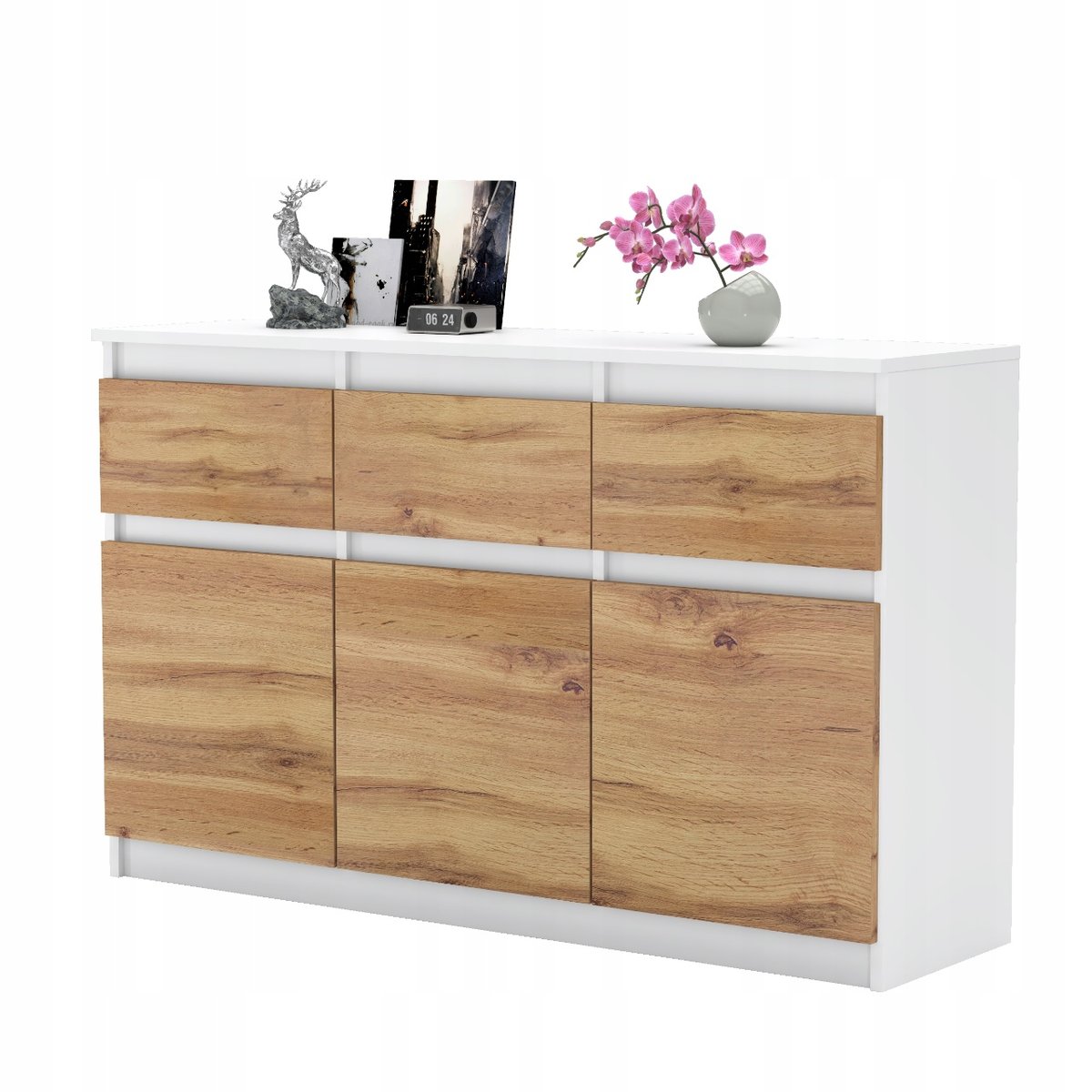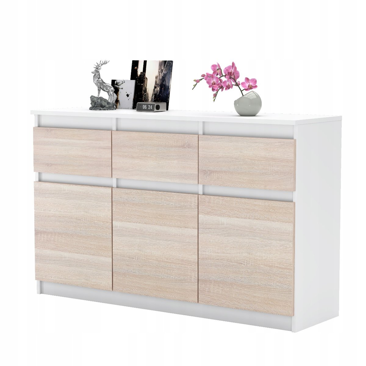 Komoda sprawdzi się w każdym mieszkaniu. Została wykonana ze starannie wyselekcjonowanych materiałów, co przekłada się nie tylko na efektowny design, ale również nieprzeciętną wytrzymałość. Uwagę przykuwa jej przepiękne i nowoczesne wzornictwo, genialnie wpasuje się w trendy wystroju wnętrz.