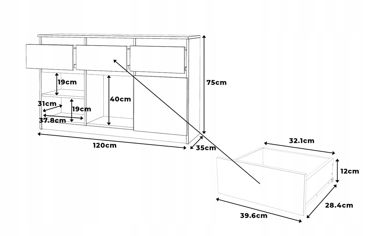 | Nazwa: | Komoda z szufladami BIALA Szafka Nowoczesna 120cm RTV do Salonu |