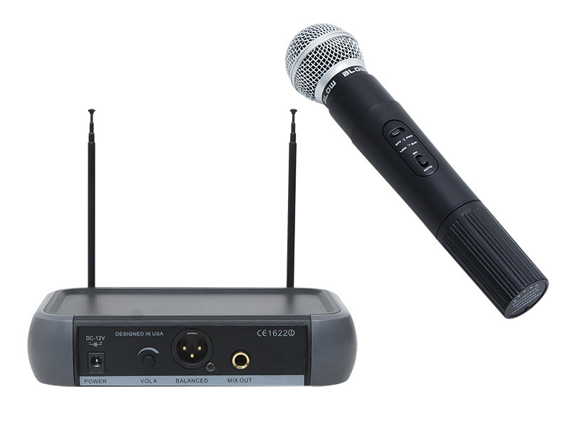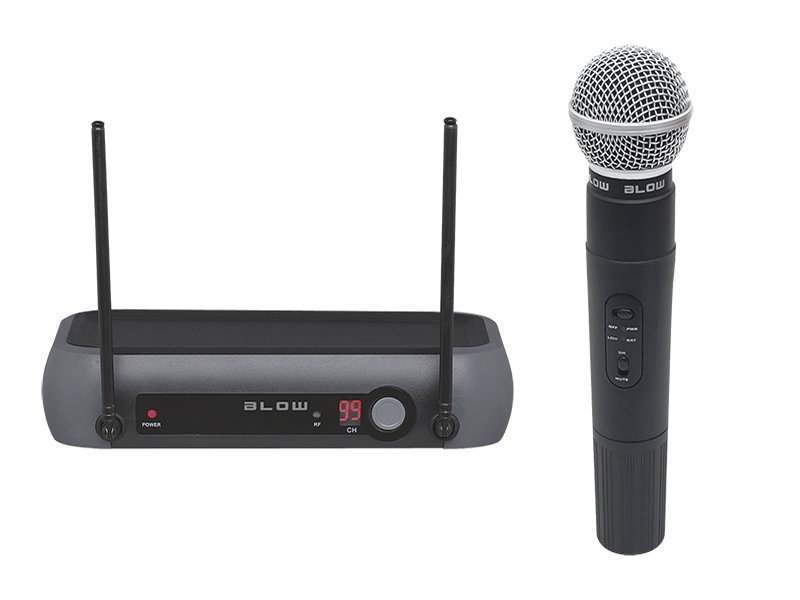 Profesjonalny, wysokiej klasy zestaw składający się z bezprzewodowego mikrofonu oraz odbiornika marki Blow przeznaczony zarówno do użytku profesjonalnego jak i amatorskiego. Podłączenie oraz użytkowanie nie powinno stanowić większego problemu. Maksymalny zasięg pomiędzy odbiornikiem, a mikrofonem wynosi 50 metrów.