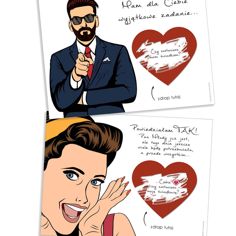 | Nazwa: | Komplet 2 kartek zdrapek dla świadków - retro. Czy zostaniesz moją świadkową / świadkiem? |