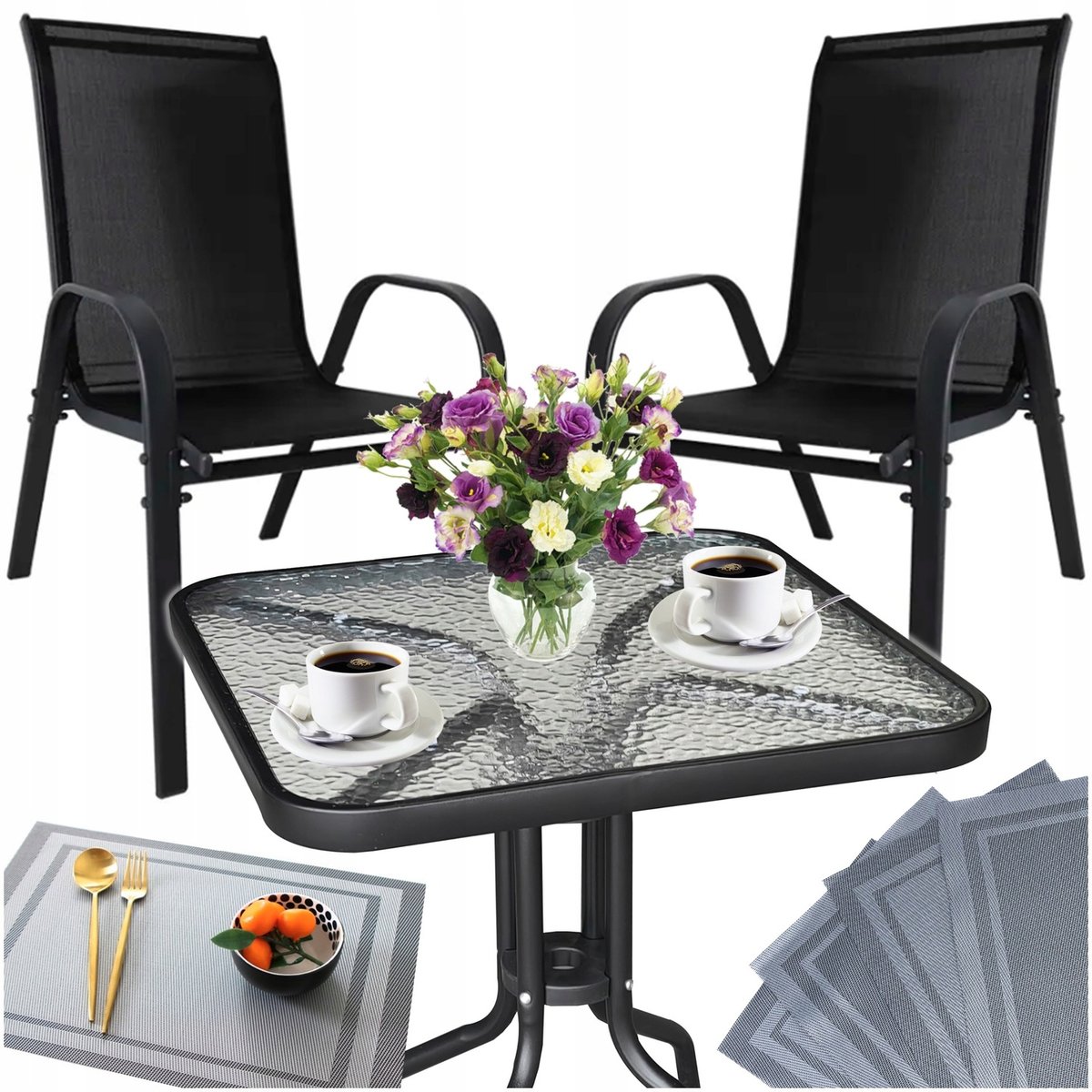 KOMPLET ELEGANCKICH STYLOWYCH MEBLI OGRODOWYCH NA KAŻDY NA BALKON TARASZESTAW KOMPLET MEBLI BALKONOWYCH DO OGRODU 2 KRZESŁA + STÓŁ KOLOR CZARNY015BKomplet mebli ogrodowychKomplet mebli ogrodowych ...