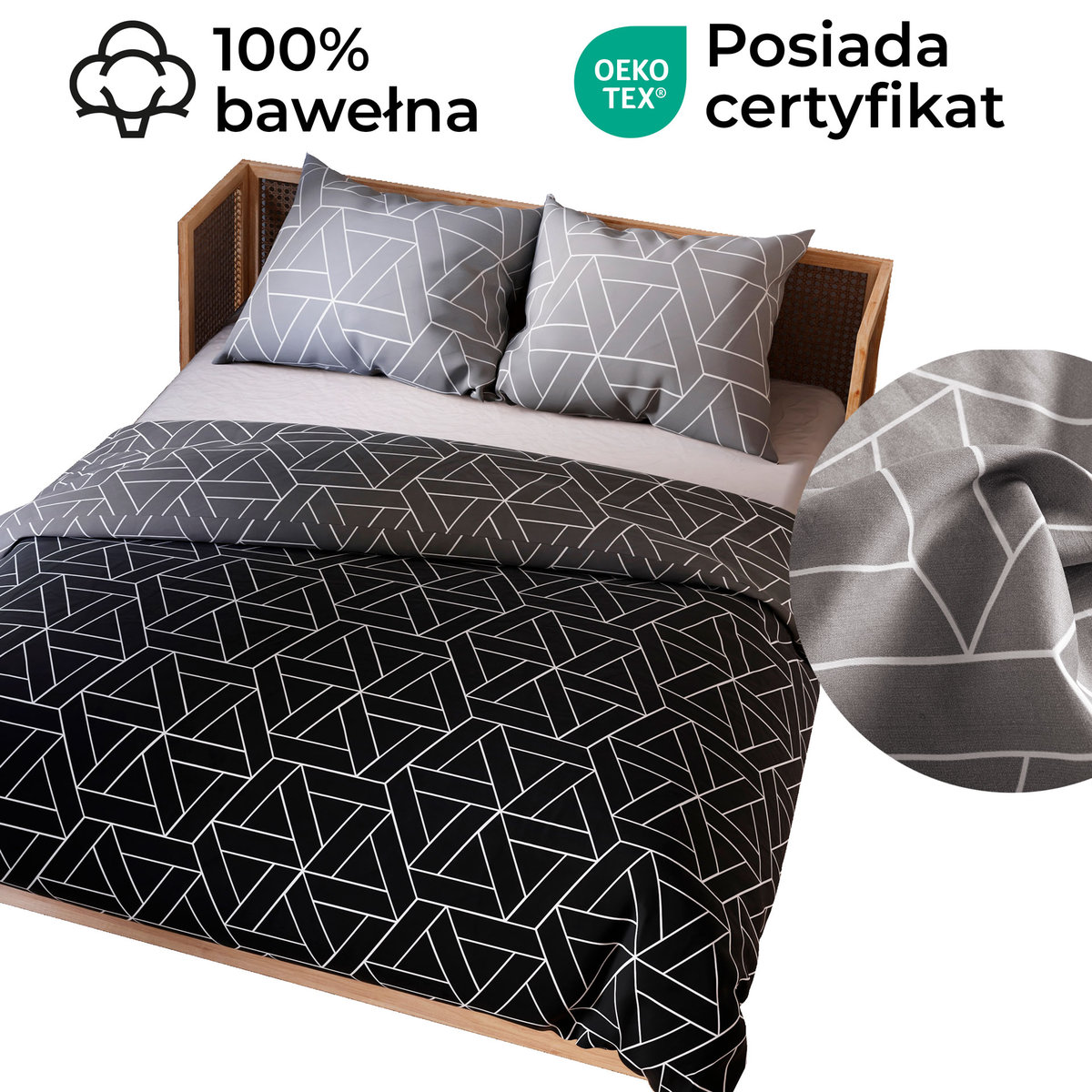 Właśnie zrecenzowałem Komplet pościeli z bawełny satynowej w tonacji szaro-czarnej z geometrycznym wzorem, Zafira, rozmiar 160x200 cm