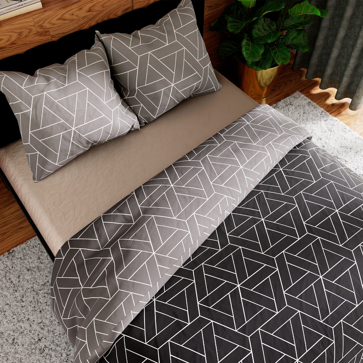 | Nazwa: | Komplet pościeli z bawełny satynowej w tonacji szaro-czarnej z geometrycznym wzorem, Zafira, rozmiar 160x200 cm |