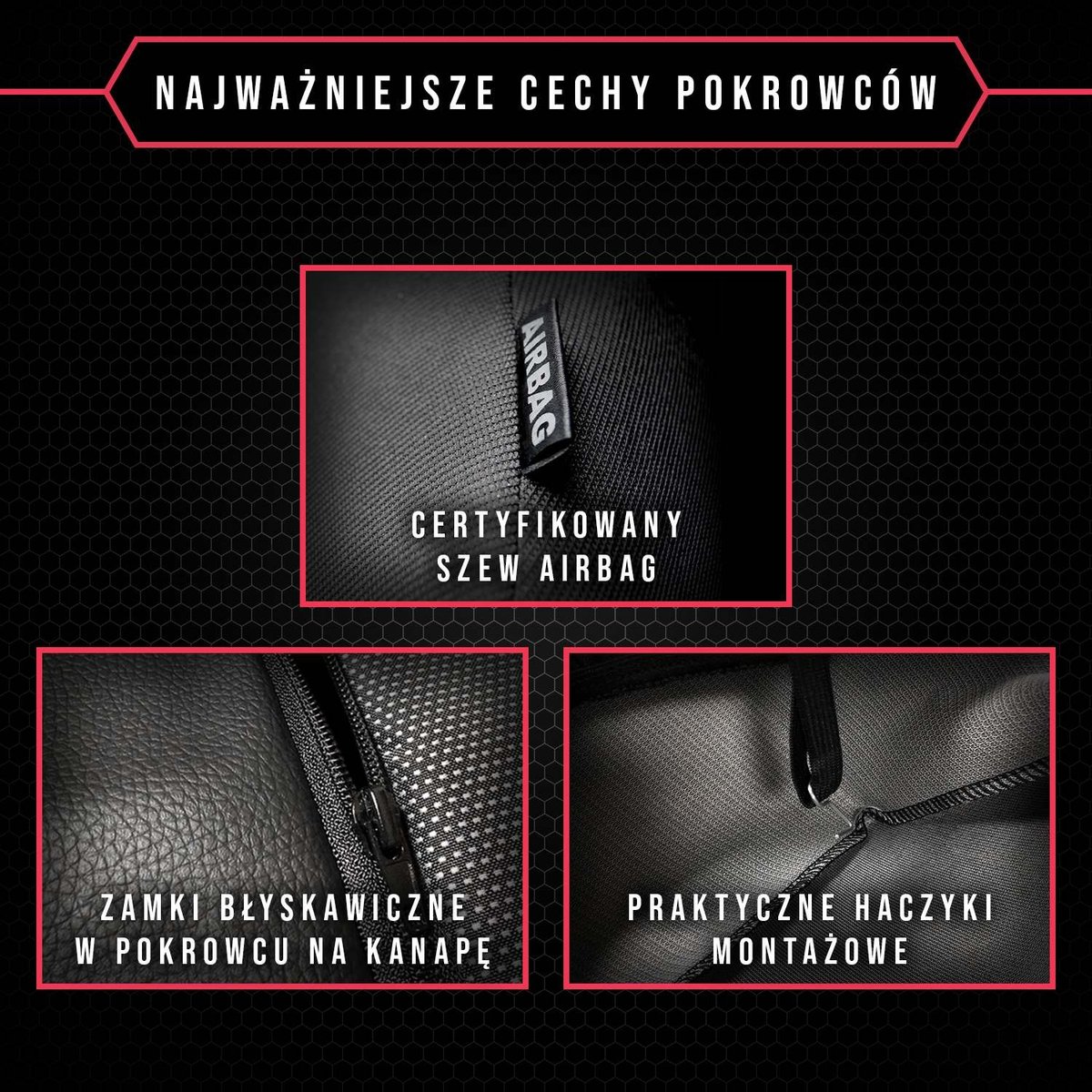 Zapraszamy do zakupu naszego produktu: Specyfikacja produktu: Pokrowce XR nie zasłaniają tyłów foteli w całości. Ich uniwersalny kształt oraz łatwość montażu pozwala na stosowanie ich w większości