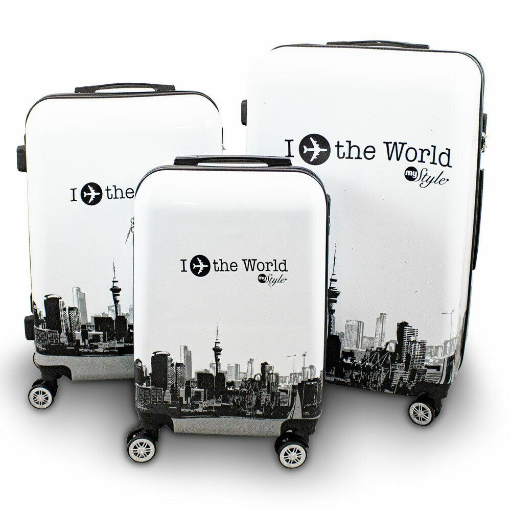 Walizki wykonane zostały z bardzo lekkiego i odpornego na uszkodzenia mechaniczne tworzywa, które charakteryzuje się dużą elastycznością oraz wytrzymałością. Wnętrze walizek wyłożone jest podszewką, która zabezpiecza bagaż przed wstrząsami i uderzeniami, a dodatkowe pasy mocujące pozwolą na zachowanie przedmiotów w tym samym miejscu. Każda z walizek dodatkowo wyposażona jest w zamki szyfrowe. Kółka obrotowe wykonane na łożyskach bardzo dobrze się prowadzą, dzięki temu walizki zapewniają komfort w podróży. UWAGA! Każda z walizek pokryta została folią zabezpieczającą, która docelowo powinna być zdjęta.