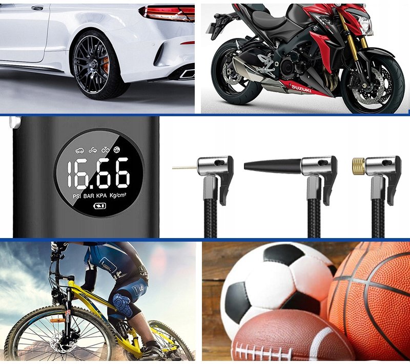 ⭕SPRĘŻARKA | ⭕POMPKA | ⭕LATARKA | ⭕WYŚWIETLACZ LCD | ⭕ZESTAW AKCESORIÓW