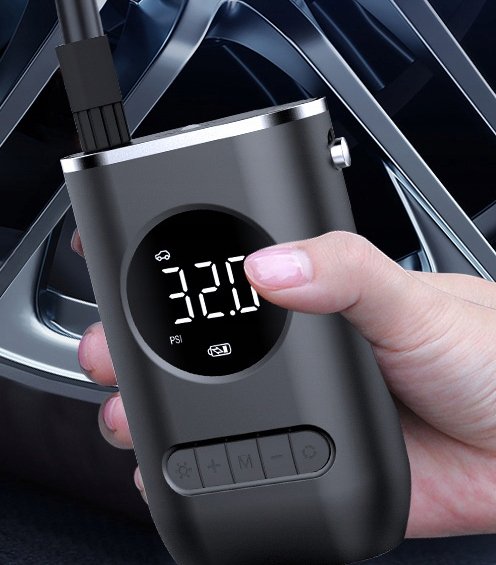 ⭕Kompresor powietrza z funkcją latarki, zasilany akumulatorem.