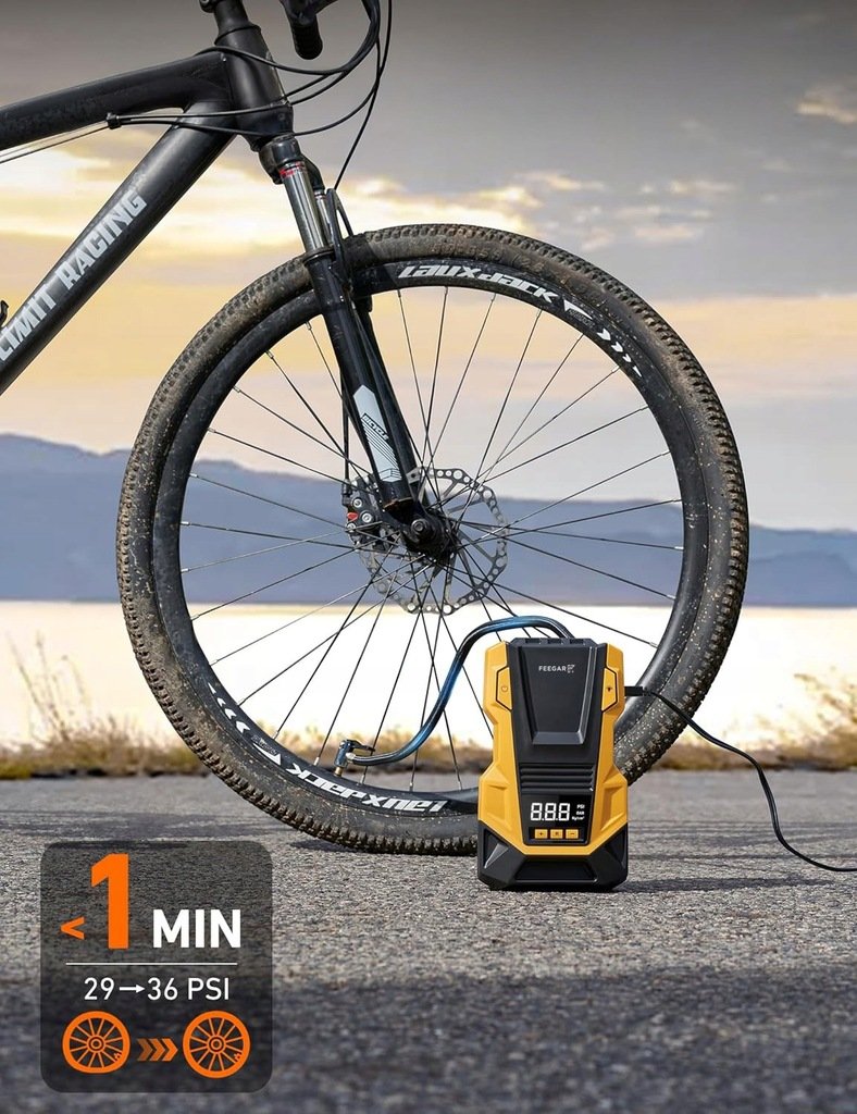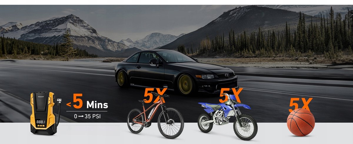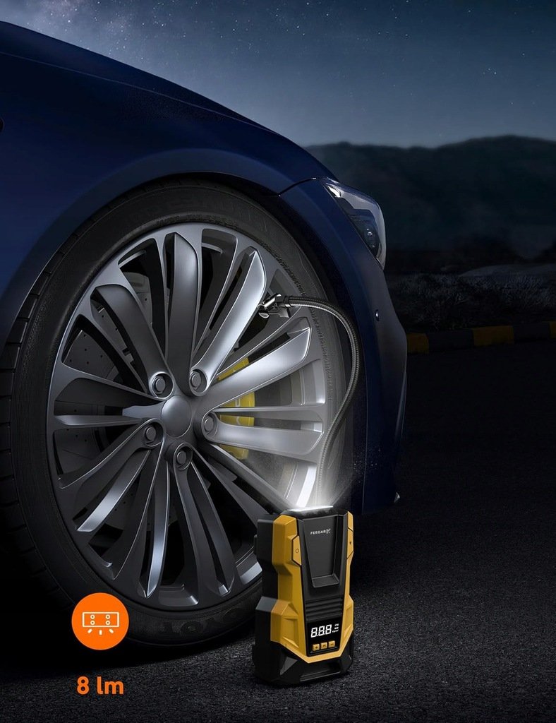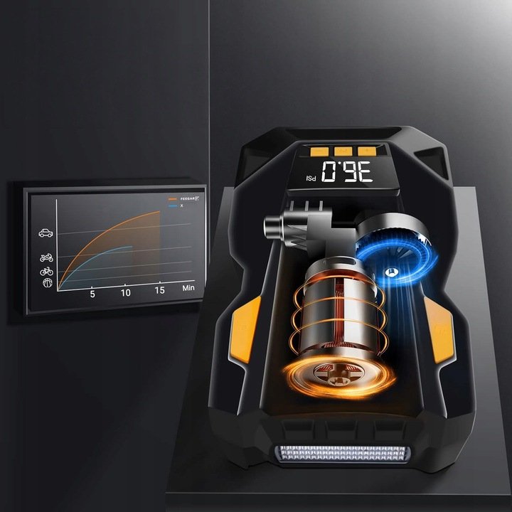 Właśnie zrecenzowałem Kompresor Samochodowy 12V 230V Feegar SPRĘŻARKA POMPKA PRZENOŚNA do Kół LED