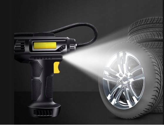 Kompresor samochodowy, Sprężarka, Bez kabla zasilającego, z latarką i wyświetlaczem LCD z zestawem akcesoriów AUTOMATYCZNE WYŁĄCZANIE KOMPRESORA PO OSIĄGNIĘCIU ZADANEGO CIŚNIENIA + WSKAZANIE AKTUALNEGO CIŚNIENIA PODCZAS POMPOWANIAWysokiej klasy