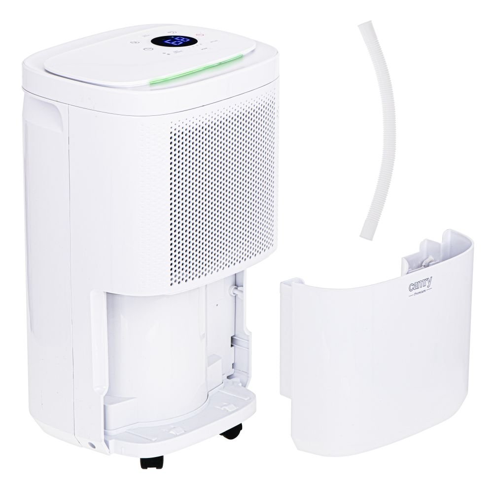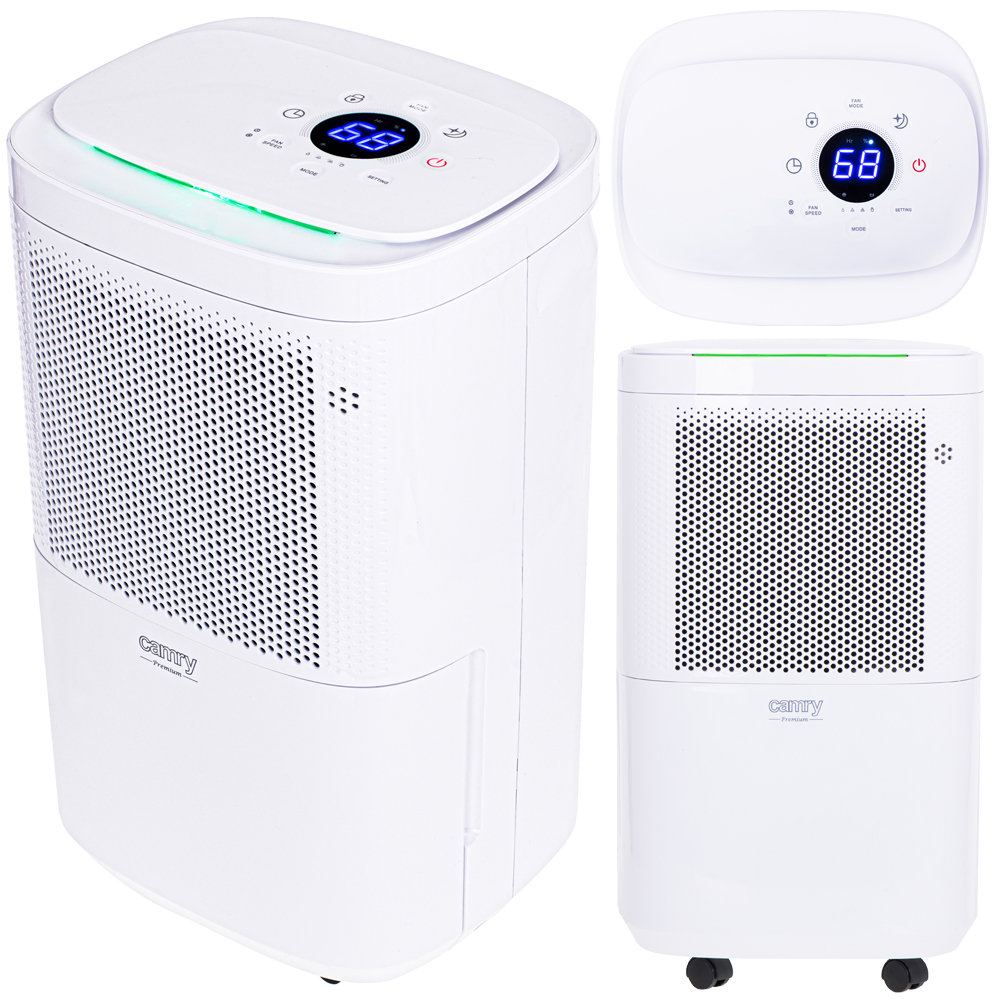 Kompresorowy osuszacz powietrzaCR 7851 to kompresorowy osuszacz powietrza o wydajności 10 litrów wody na dobę z wyświetlaczem LCD. Urządzenie ma 4 tryby osuszania: zwykły, ciągły, mocny i suszenie odzieży. Osuszacz Wyposażony jest precyzyjny czujnik wskazujący aktualny poziom wilgotności w pomieszczeniu. Urządzenie po osuszeniu pomieszczenia do oczekiwanego poziomu wilgotności automatycznie wyłącza kompresor zapewniając cyrkulację powietrza poprzez działający wentylator. Dodatkowo osuszacz został wyposażony w kontrolkę wilgotności wskazującą 3 kolorami poziom wilgotności na froncie urządzenia. Funkcja blokady rodzicielskiej i wygaszenia wyświetlacza stanowią dodatkowe atuty produktu.