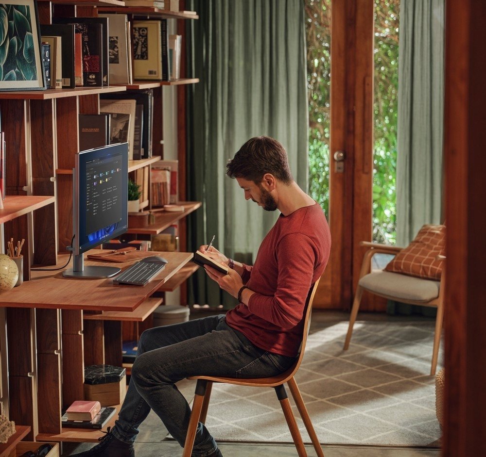 Urządzenie wyposażono w system audio Poly Studio z dwoma głośnikami 5 W, zapewniający wyraźny i przestrzenny dźwięk. Kamerka 5 MP z funkcją rozpoznawania twarzy i redukcją szumów, wspierana przez Windows Studio Effects, sprawia, że rozmowy wideo są naturalne i wyraźne. Złącza HDMI-in i HDMI-out umożliwiają wygodne podłączenie dodatkowych urządzeń – np. laptopa, konsoli czy drugiego monitora. Nowoczesne porty USB-C i USB-A o wysokiej przepustowości pozwalają na szybkie przesyłanie danych i ładowanie urządzeń peryferyjnych.
