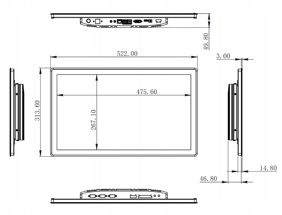 21,5-calowy ekran HD (1920 × 1080) zapewnia ostry obraz, wysoki kontrast i szerokie kąty widzenia. Panel dotykowy z twardą powierzchnią (6H) jest odporny na zarysowania i uszkodzenia mechaniczne, a jego czułość pozwala na wygodną obsługę nawet w rękawicach roboczych. Idealny do pracy jako interfejs HMI, panel operatorski czy punkt informacyjny, gdzie liczy się zarówno czytelność, jak i intuicyjna obsługa.