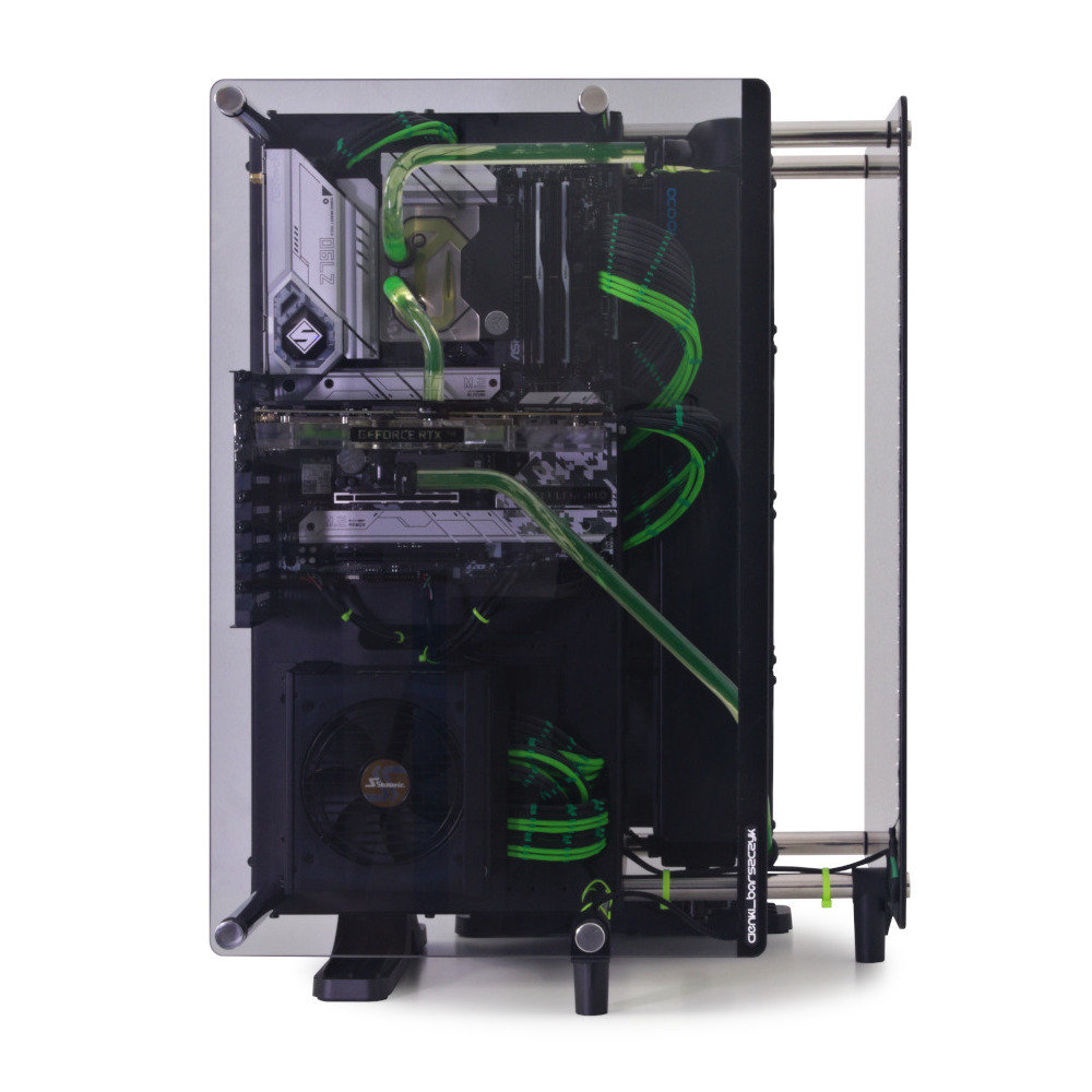 - Karta graficzna chłodzona wodą – dokładnie tak jak w przypadku procesora, karta graficzna ma zamontowany specjalny, dedykowany blok, który schładza ją z bardzo wysoką skutecznością.