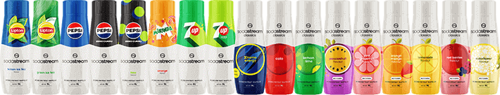 Rozpocznij niezwykłą podróż z syropami SodaStream. Odkryj egzotyczne, cytrusowe smaki z syropami o smaku Lemoniady, Różowego Grapefruita czy Cytryny i Limonki. Daj się także porwać aromatycznym nowościom, Marakui i Pomarańczy z Mango. Nie zapomnij wypróbować kultowych klasyków, jak Pepsi, Mirinda i 7 Up, a jeśli zabraknie ci energii sięgnij po SodaStream Xtreme Energy.