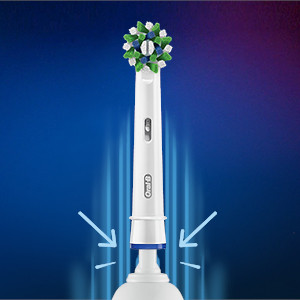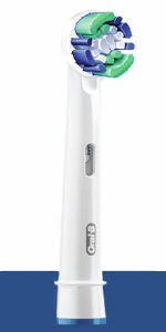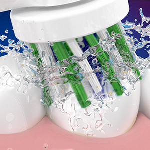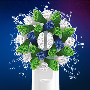 Doskonale znana okrągła końcówka szczoteczki Oral-B dokładnie otacza każdy ząb, łatwo czyszcząc nawet te obszary, które są trudno dostępne dla tradycyjnych, podłużnych szczoteczek, takich jak szczoteczki manualne lub soniczne. Końcówka CrossAction ma włókna precyzyjnie nachylone pod kątem 16°, aby otaczać każdy ząb i dokładnie czyścić przestrzenie międzyzębowe.