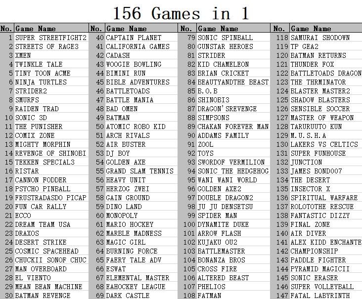 Retro jest zawsze modne! Zainstalowanych 156 gier wideo zabierze Cię w piękne czasy beztroskich dni Twojego dzieciństwa. W konsoli znajdują gry: edukacyjne, zręcznościowe, strzelaniny, przygodowe, sportowe i inne.