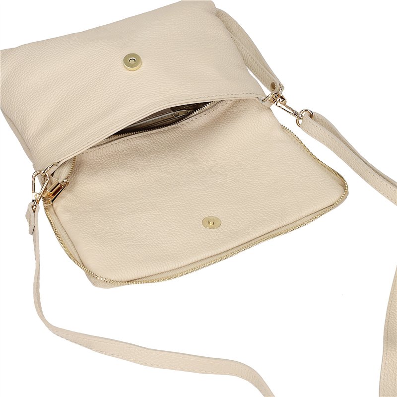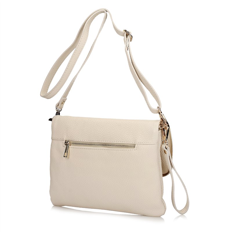 Pasek o długości 120 cm, wykonany również z naturalnej skóry, zapewnia wygodę noszenia, a metalowy zamek w kolorze złotym dodaje jej wyjątkowego charakteru.
