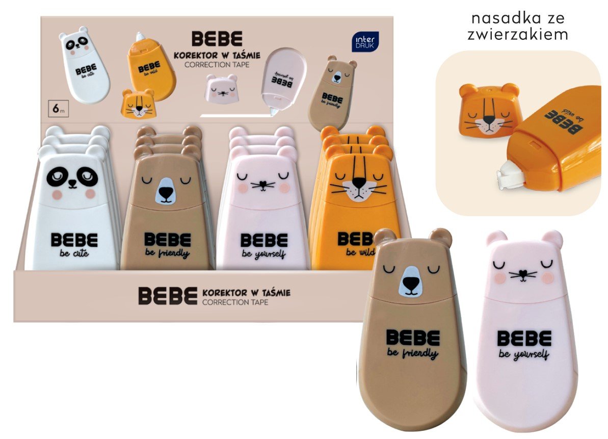 | Nazwa: | Korektor w taśmie, motyw zwierzęta 6m BeBe Interdruk, 1 sztuka, mix wzorów |