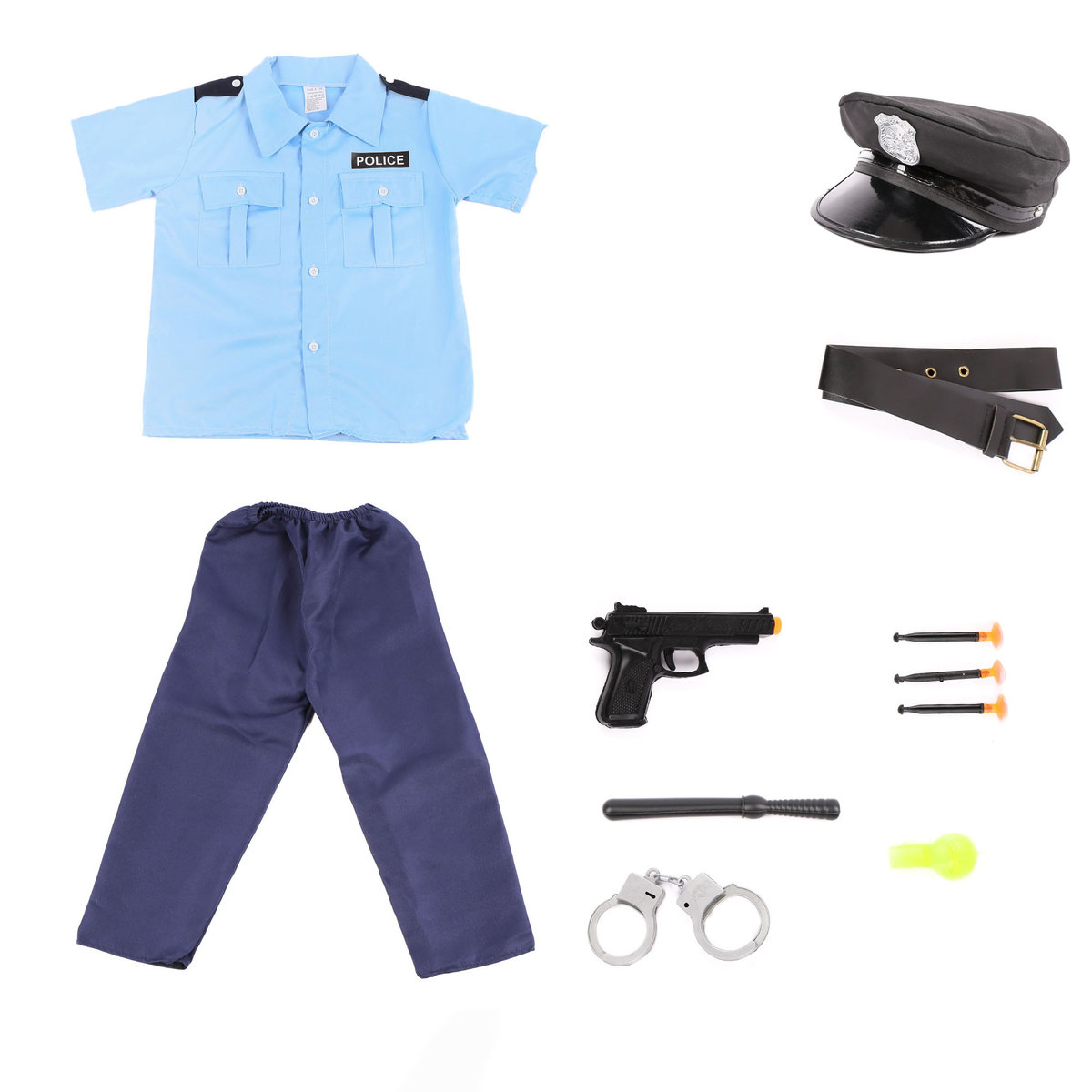 STRÓJ POLICJANTA DLA CHŁOPCA I DZIEWCZYNKI -ZESTAW 11 ELEMENTÓW- Rozmiar z metki S- Sugerowany wiek dziecka: 6-7 lat- Sugerowany rozmiar ubrań dziecka: 116-122 cm- Wiernie odwzorowanyZestaw Zawiera:-