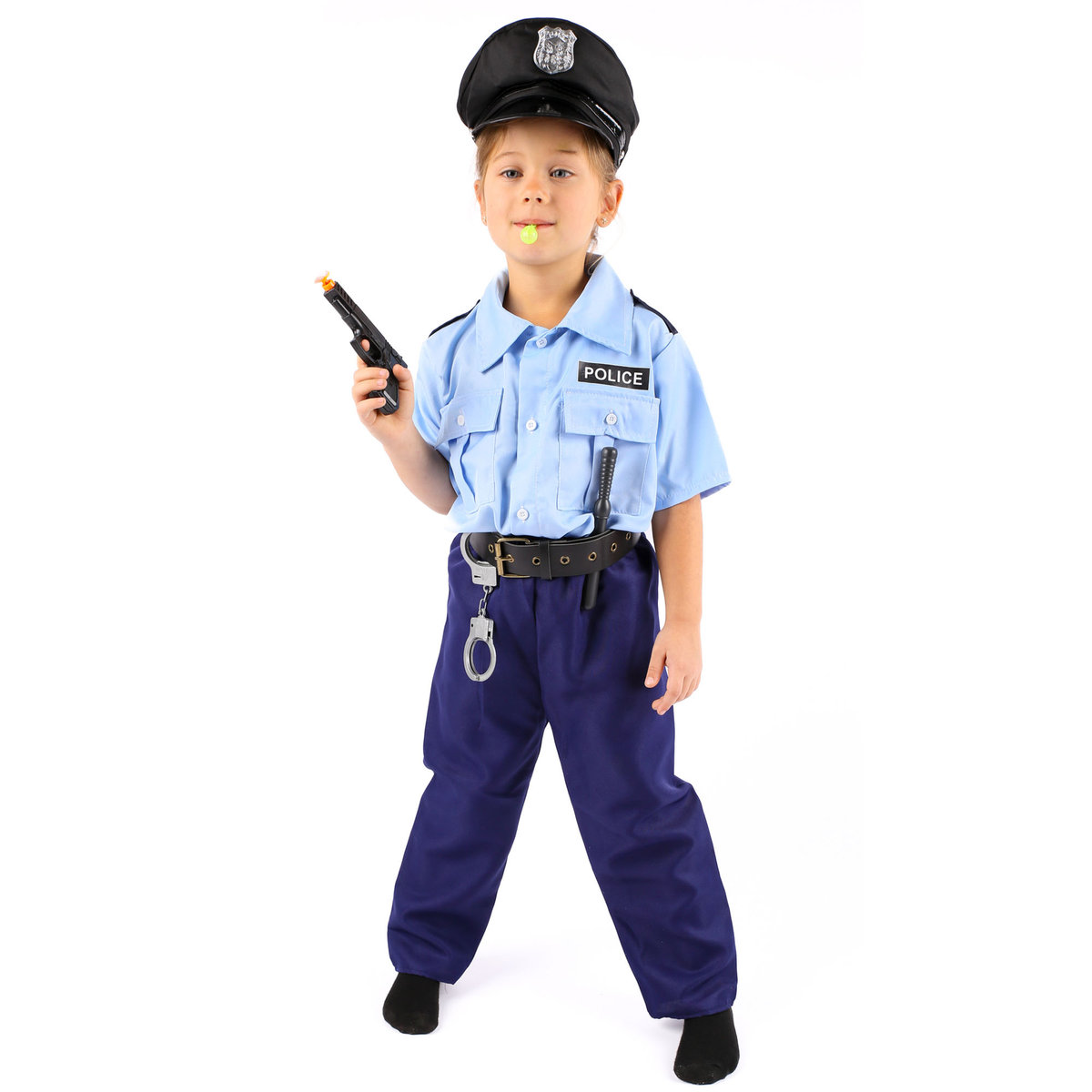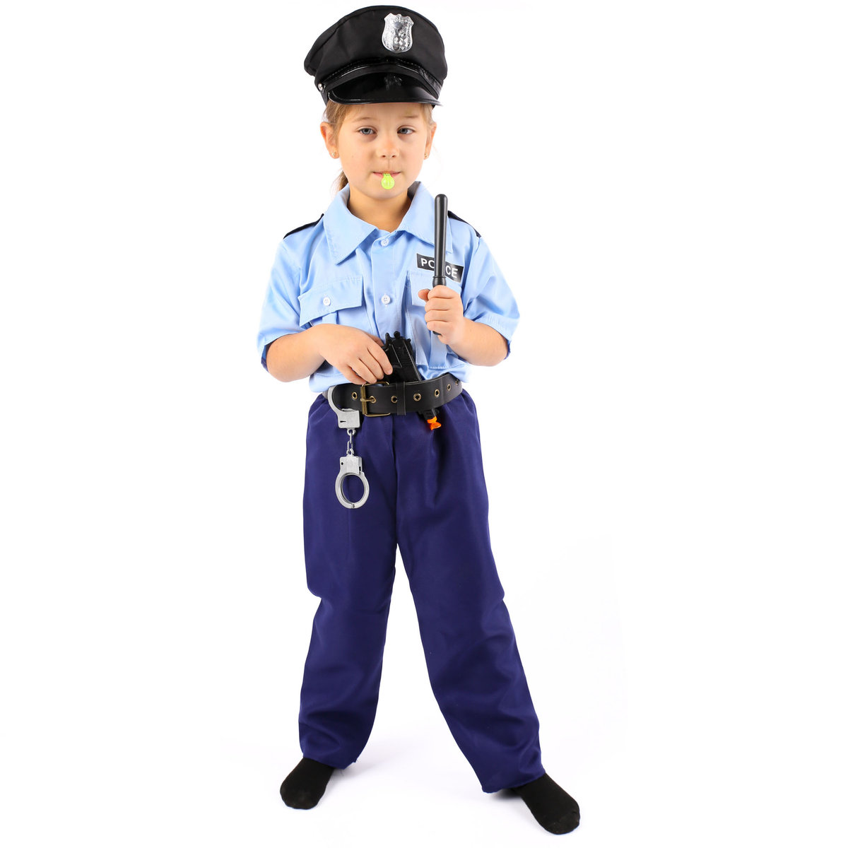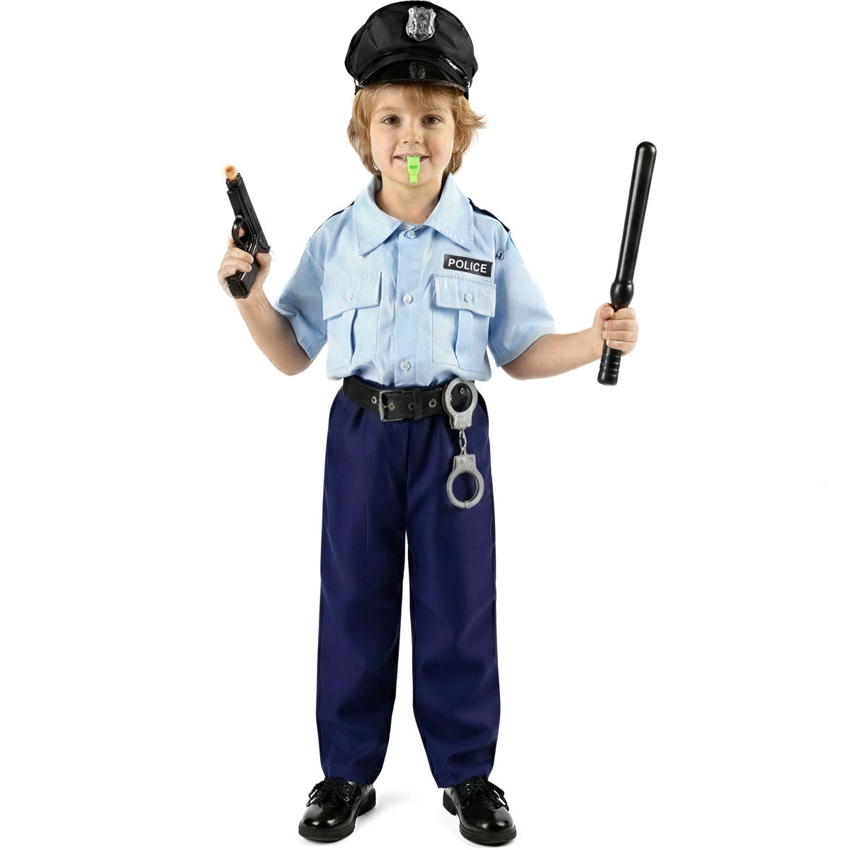 Z gwizdkiem w ustach, pałką w jednej dłoni i pistoletem w drugiej, mały stróż prawa jest gotowy na każdą ewentualność. Podaruj swojemu dziecku nie tylko kostium, ale też potężną dawkę pewności siebie!