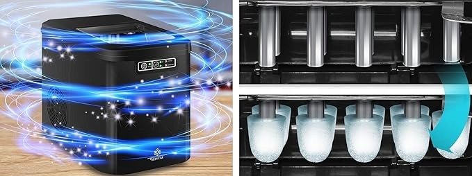Wysoka wydajność, która pozwala wyprodukować 9 kostek lodu w ciągu 7-13 minut. Pojemnik jest dobrze zaizolowany, co pozwala utrzymać lód.