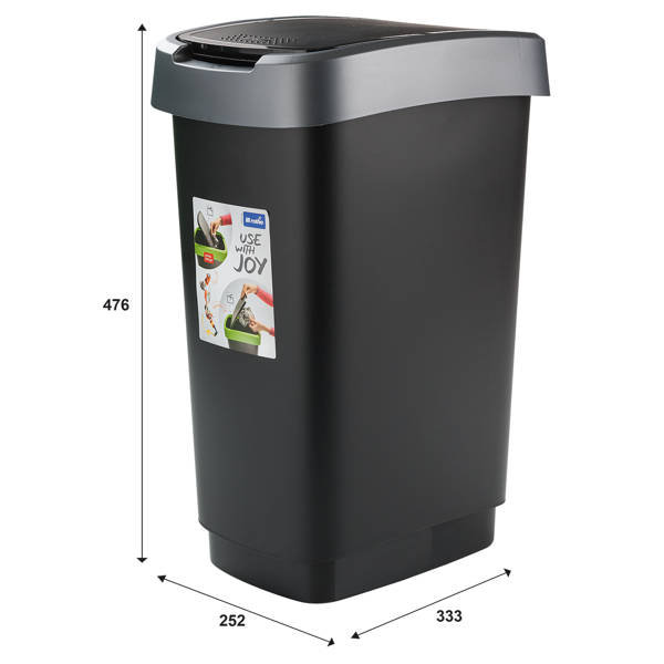 Kosz na śmieci Rotho TWIST z uchylną pokrywą | Zamykany pojemnik na śmieci Czysty, z uchylną pokrywąkosze z serii TWIST są dostępne w różnych rozmiarach. Pojemnik na śmieci w różnych rozmiarach, ...