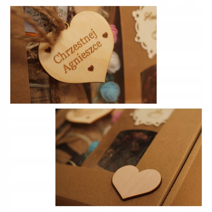 Chrzestnej Agnieszce" oraz drewniany serce wyjątkowo wzbogaca wygląd