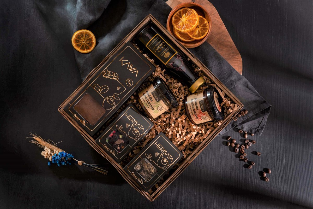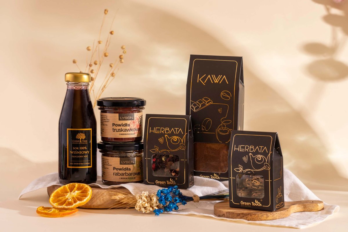 Właśnie zrecenzowałem Kosz prezentowy zestaw herbat kwitnących kawa sok powidła kwiaty prezent