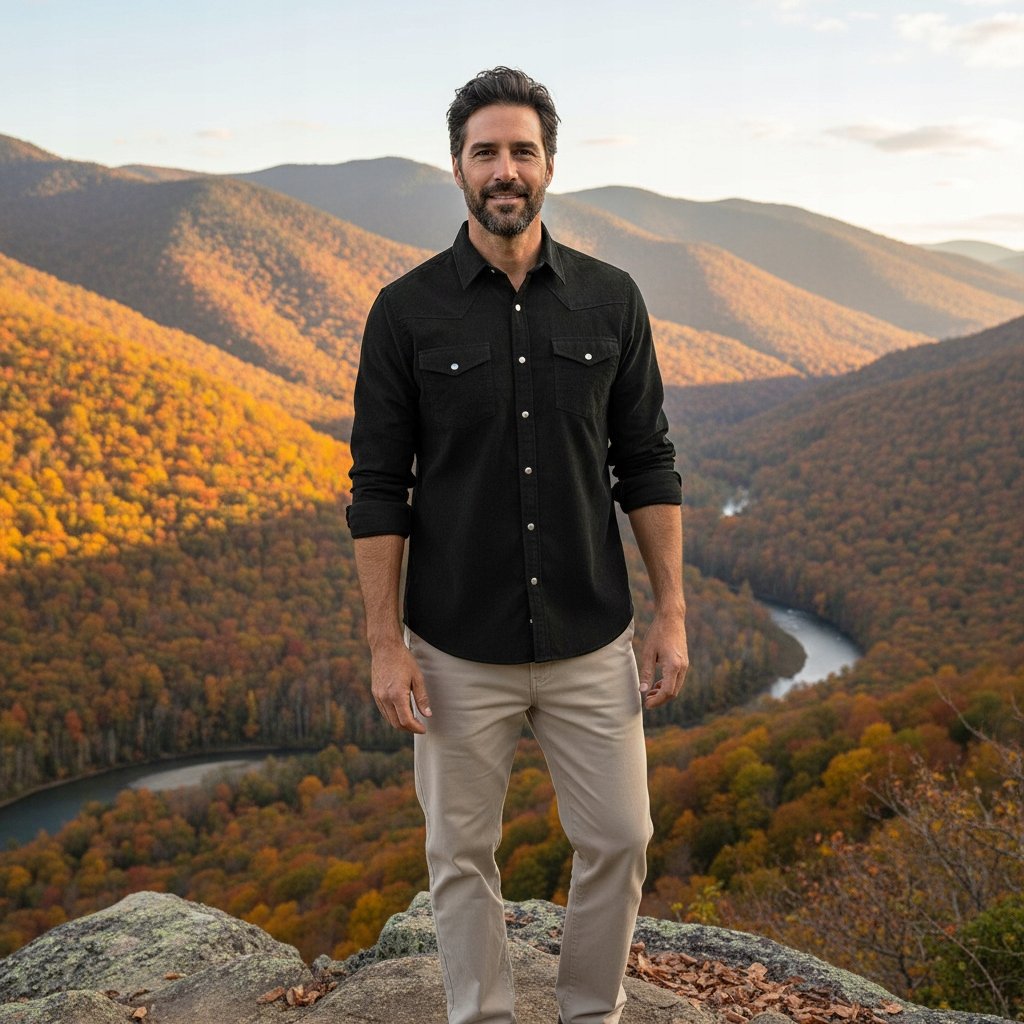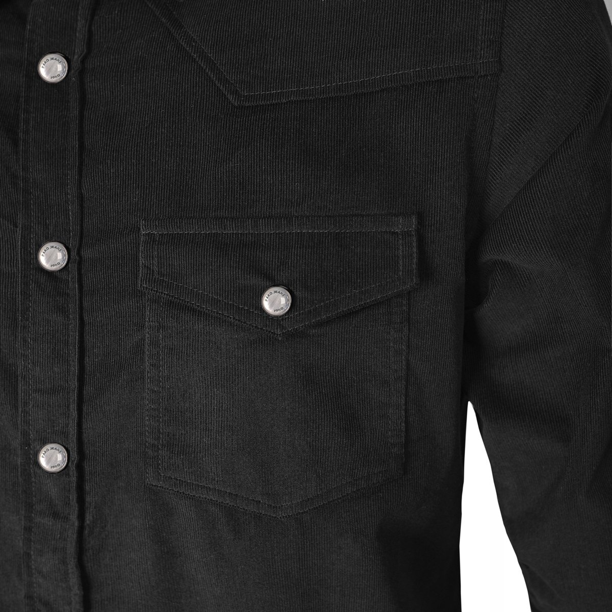 Klasyczna męska koszula z długim rękawem, uszyta z miękkiego sztruksu w czarnym kolorze. Materiał wyróżnia się charakterystyczną prążkowaną fakturą, jest przyjemny w dotyku i świetnie sprawdza się w chłodniejsze dni.