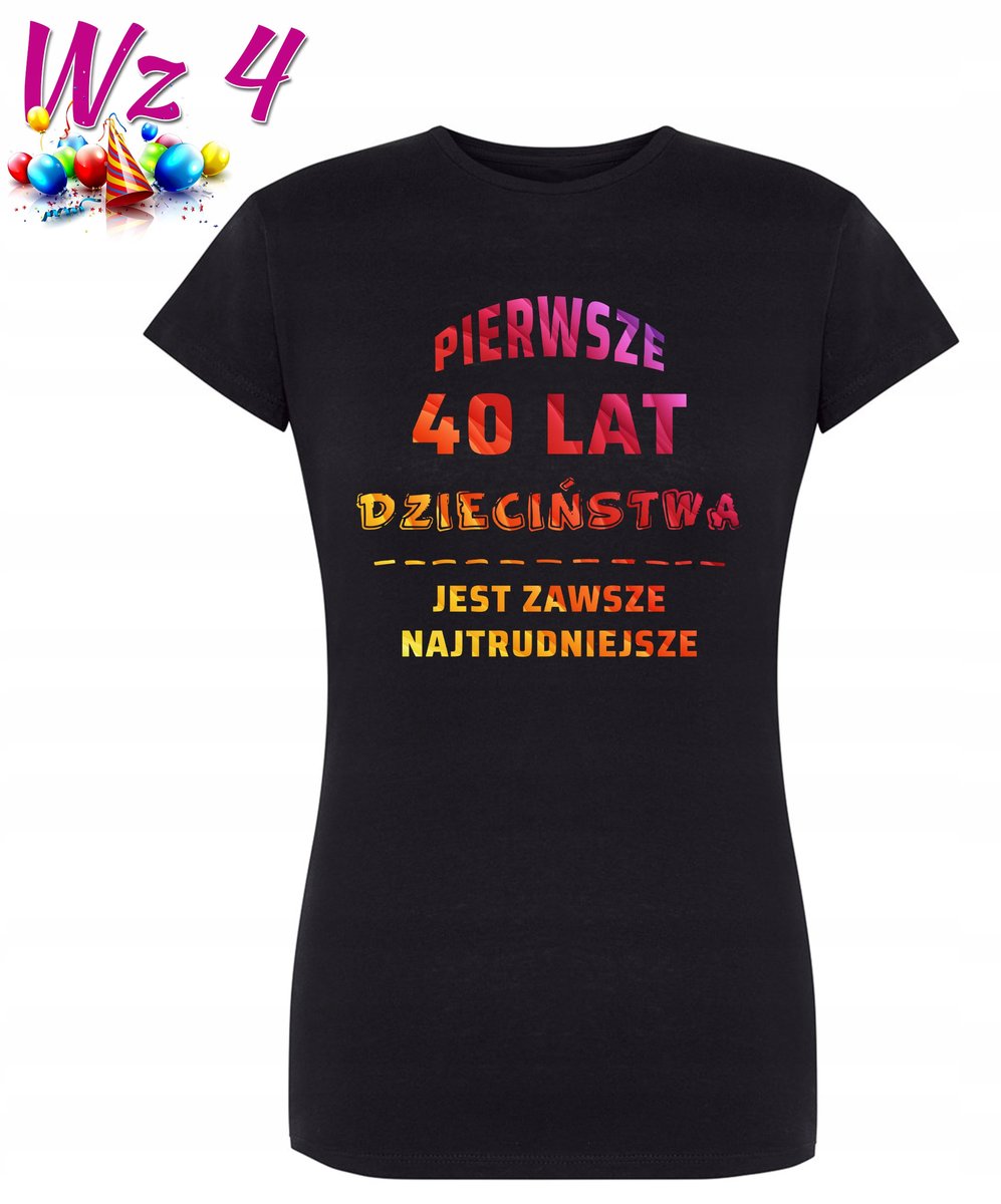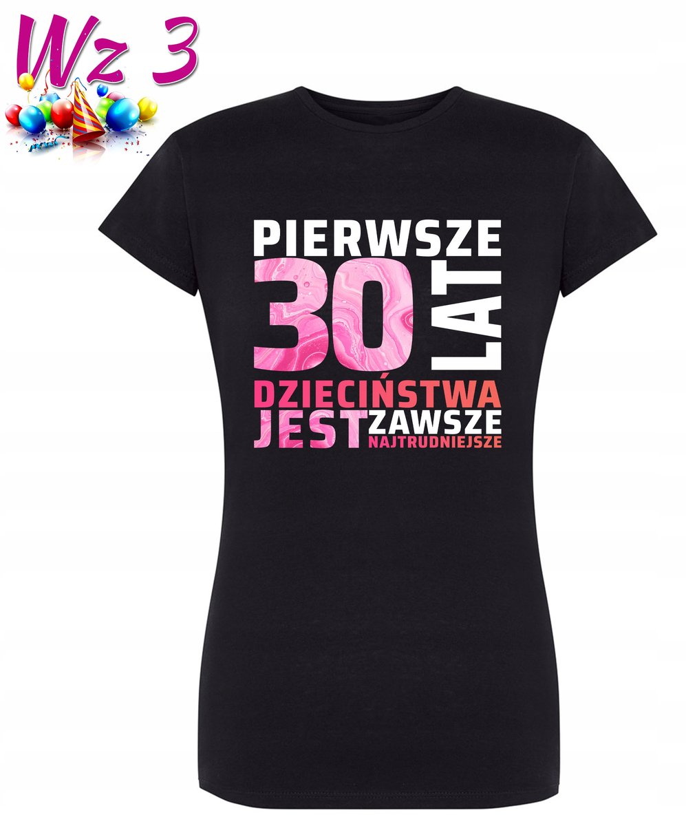 KOSZULKA DAMSKA Z NADRUKIEM - PIERWSZE .... LAT DZIECIŃSTWA JEST ZAWSZE NAJTRUDNIEJSZE-NA 20 30 40 50 60 URODZINYKoszulka wykonana jest w 100% z bawełny, gramatura 145g/m2, co sprawia, że jest ...