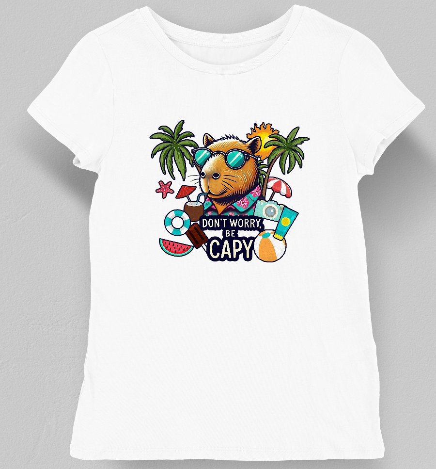 | Nazwa: | Koszulka damska don't worry be cappy kapibara biała S |