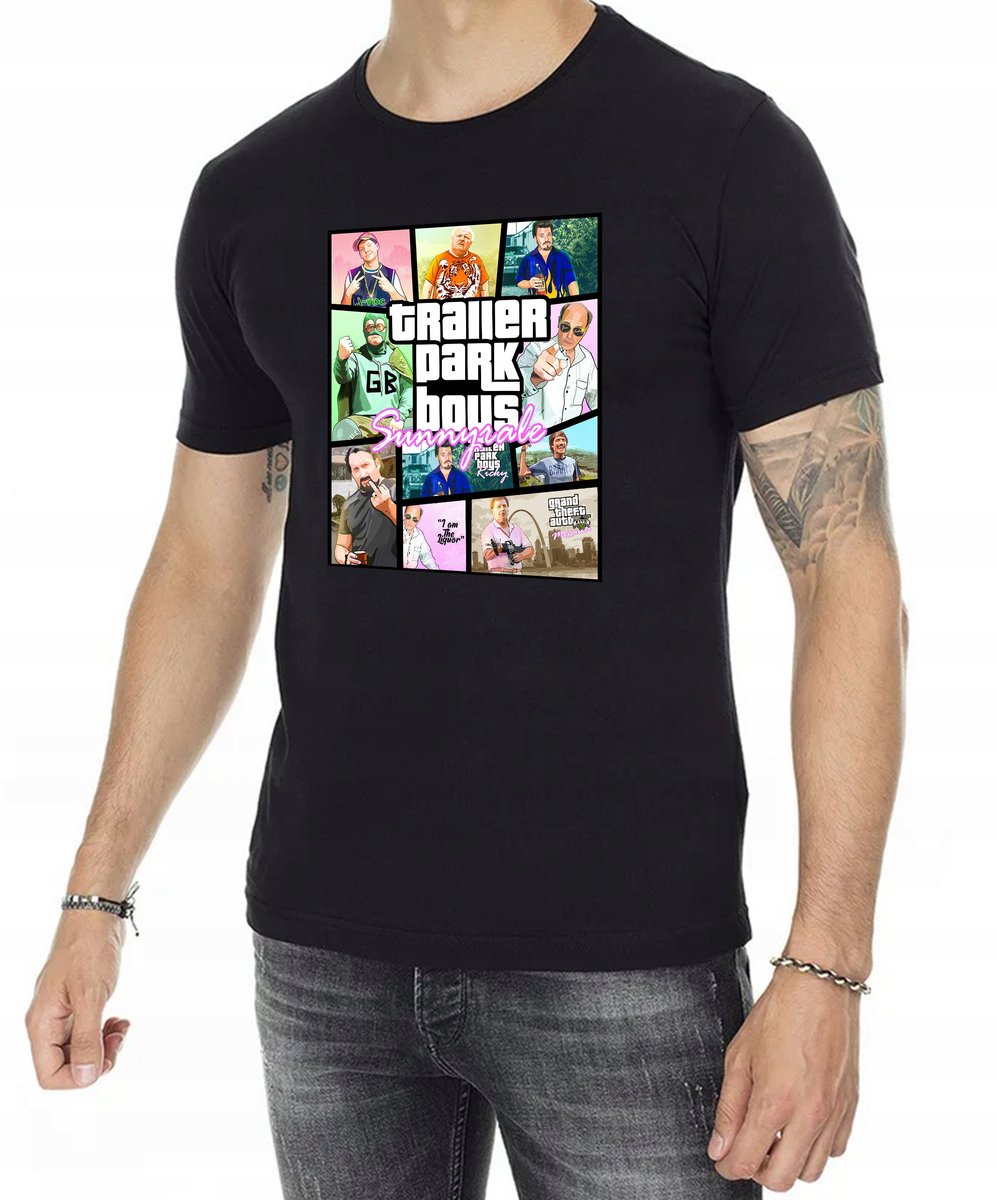 KOSZULKA MĘSKA W PYTĘ Z NADRUKIEM