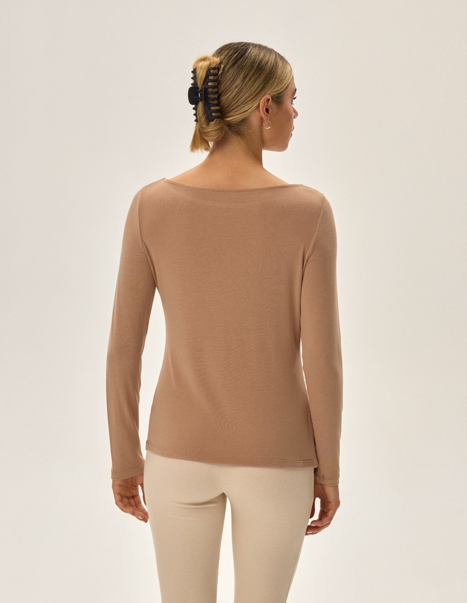 Koszulka Pf Jimena łączy w sobie klasyczny fason z nowoczesnymi materiałami, tworząc elegancką bazę dla każdej garderoby. Jej beżowy kolor, doskonale wpisujący się w neutralną paletę, podkreśla uniwersalność tego modelu, który idealnie sprawdzi się w różnych stylizacjach. Gładka tkanina, składająca się w 95% z wiskozy i 5% z elastanu, zapewnia jedwabistą miękkość i subtelne dopasowanie, co czyni ją nie tylko modnym, ale i funkcjonalnym wyborem. Długi rękaw i dekolt w łódkę nadają koszulce ponadczasowego charakteru, a jej wszechstronność sprawia, że świetnie sprawdza się zarówno jako samodzielny element, jak i część warstwowej stylizacji. Wykorzystanie wiskozy i elastanu gwarantuje, że koszulka nie tylko pięknie leży na ciele, ale również zapewnia wygodę przez cały dzień. To doskonały wybór dla tych, którzy cenią sobie elegancję połączoną z praktycznym komfortem.