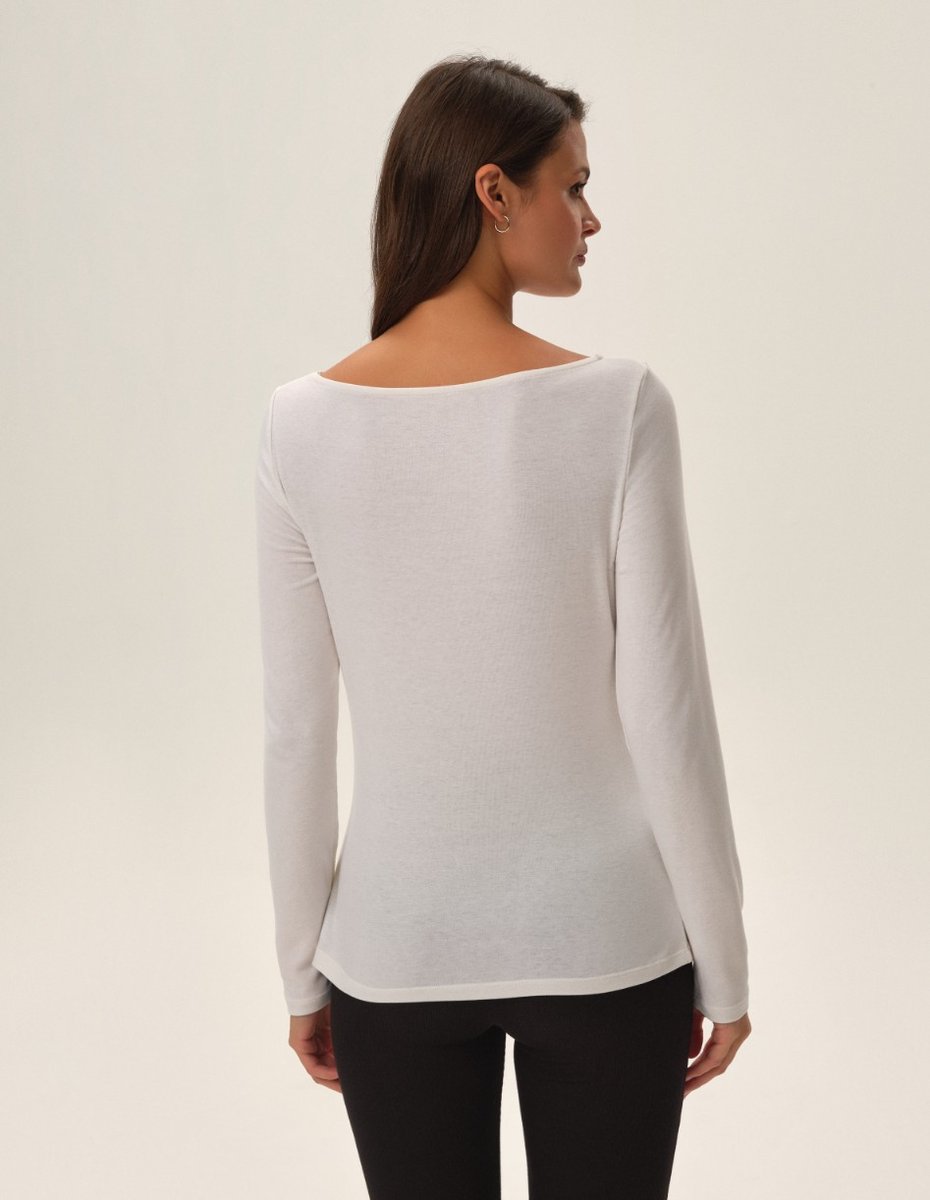 Pf Jimena to kwintesencja elegancji w minimalistycznej formie. Wykonana z kremowej, gładkiej tkaniny, która łączy 95% wiskozy z 5% elastanu, zapewnia nie tylko wyjątkowy komfort, ale i subtelny, luksusowy wygląd. Jej długi rękaw i dekolt w łódkę dodają klasycznego uroku, czyniąc ją idealnym wyborem do noszenia jako samodzielny element garderoby lub jako elegancka podkoszulka. Koszulka Pf Jimena to doskonały przykład funkcjonalności połączonej z estetyką. Dzięki elastycznym właściwościom materiału, ta gładka koszulka dopasowuje się do sylwetki, oferując wszechstronność i komfort przez cały dzień. Jej prosty, ale wysmakowany design sprawia, że jest nie tylko praktycznym wyborem do codziennego użytku, ale także stylowym elementem, który może wzbogacić różnorodne stylizacje.