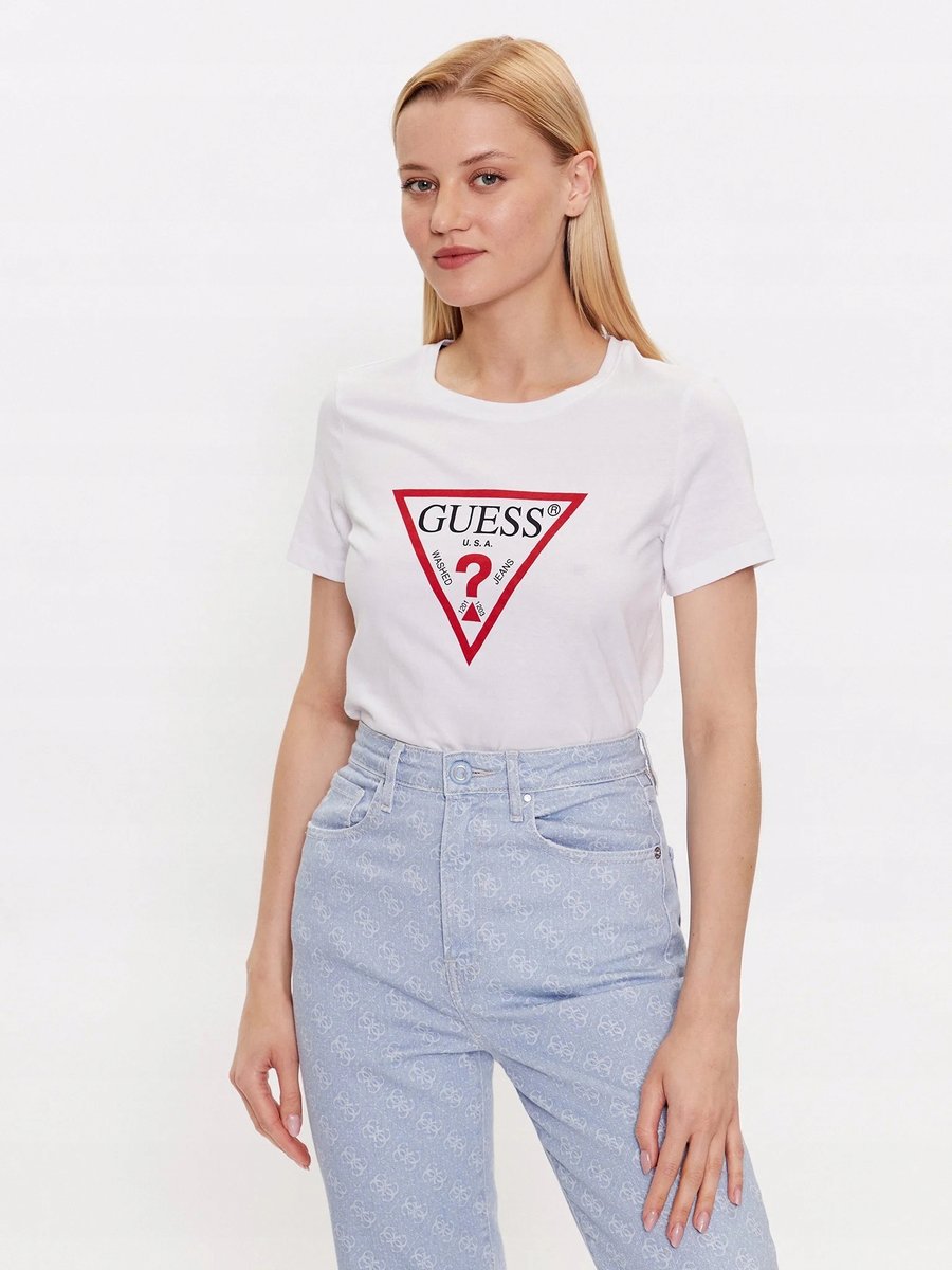 Koszulka T-shirt Damska Bluzka Guess w kolorze białym to wybór łączący w sobie niebanalny styl oraz ogromny komfort noszenia. Sprawdzi się jako baza różnych stylizacji, gdyż doskonale komponuje się z innymi elementami garderoby.