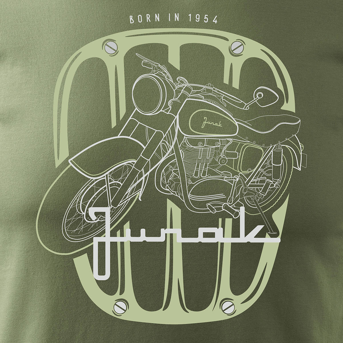 Męska koszulka t-shirt z nadrukiem kultowego polskiego Motocykla - Junak Właściwości koszulki: typ: regular gramatura 175 g/m2 100% bawełna czesana ring-spun dwuwarstwowy ściągacz wokół wykroju ...