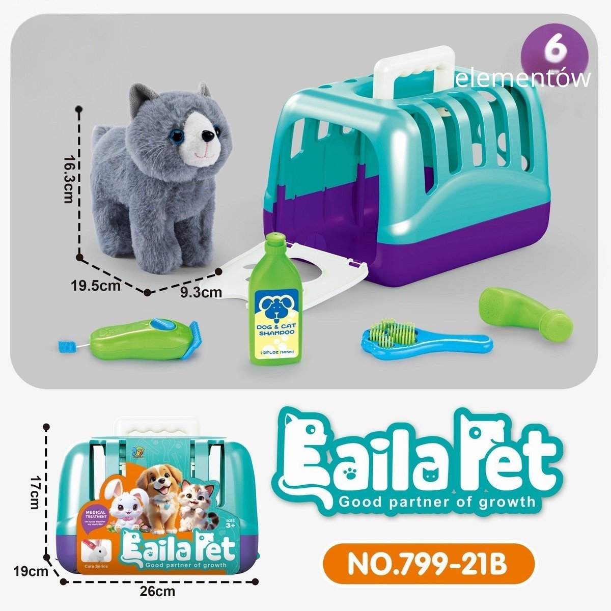 W skład tego kompletnego zestawu wchodzi nie tylko uroczy kotek i klatka, ale także liczne akcesoria pielęgnacyjne dla zwierzaka. Dzięki temu dzieci mogą zadbać o swojego pluszowego przyjaciela tak, jak prawdziwego zwierzaka - czesząc go grzebieniem, dając mu jeść lub nawet organizując mu wizytę u weterynarza.