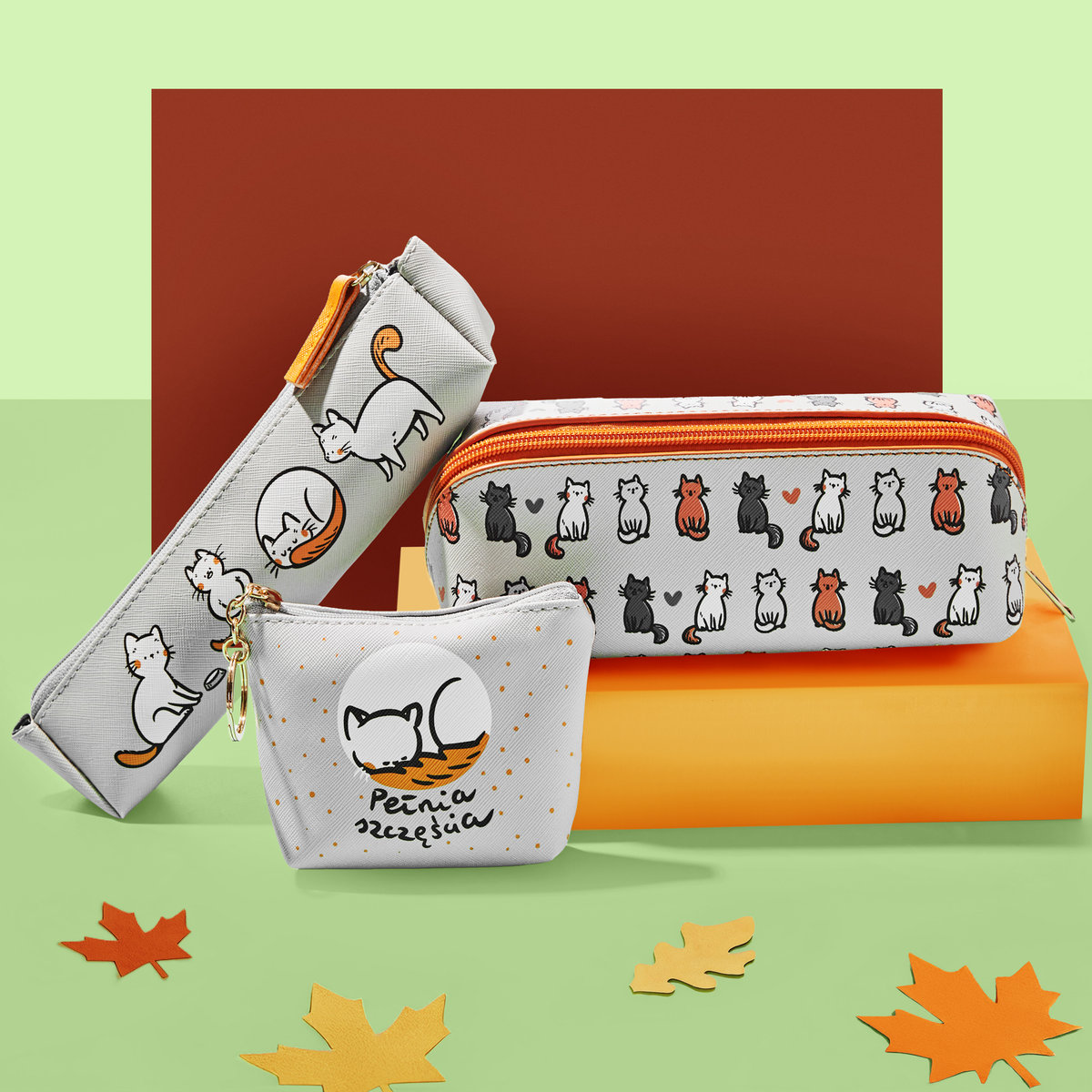 Wśród propozycji znajdziesz poduszki, koce, termofory i ogrzewacze. Ceramiczne kubki i szklanki z kocim bohaterem sprawią, że poranna herbata będzie jeszcze przyjemniejsza. Dla miłośników gadżetów: kosmetyczki, lunchboxy i termosy z ilustracjami. Artystyczne dusze ucieszą się z notesów, piórników, zakładek i długopisów Nie zabrakło też uroczych drobiazgów: naklejek, przypinek i breloków, kartek okolicznościowych,torebek prezentowych z kotem i zabawnymi tekstami.