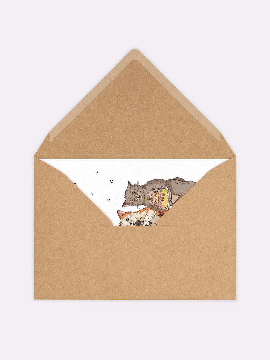 Kartka na urodziny z motywem kota w zestawie z kopertą jest pusta w środku. Została wydrukowana na papierze ekologicznym. Jej wnętrze czeka na wypełnienie treścią płynącą prosto z Twojego serca! Wyjątkowy pomysł na prezent urodzinowy dla miłośnika kotów!