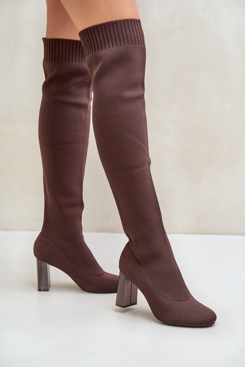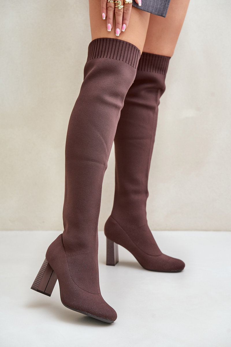 Właśnie zrecenzowałem Kozaki Ze Skarpetkową Cholewką Za Kolano Na Słupku Brązowe Esanira -38
