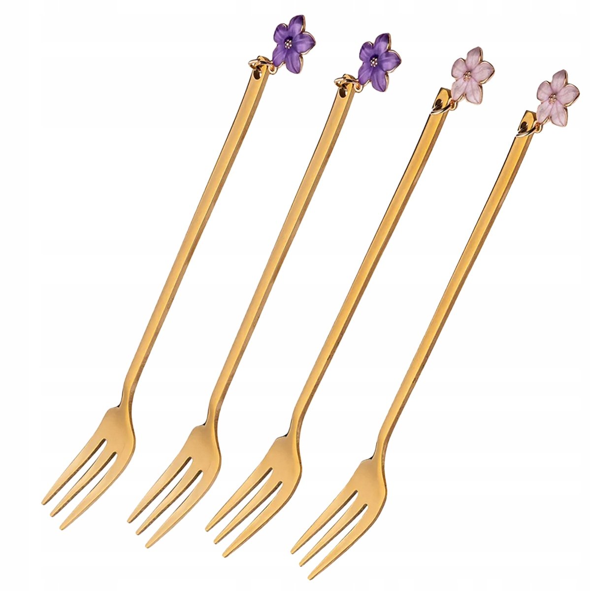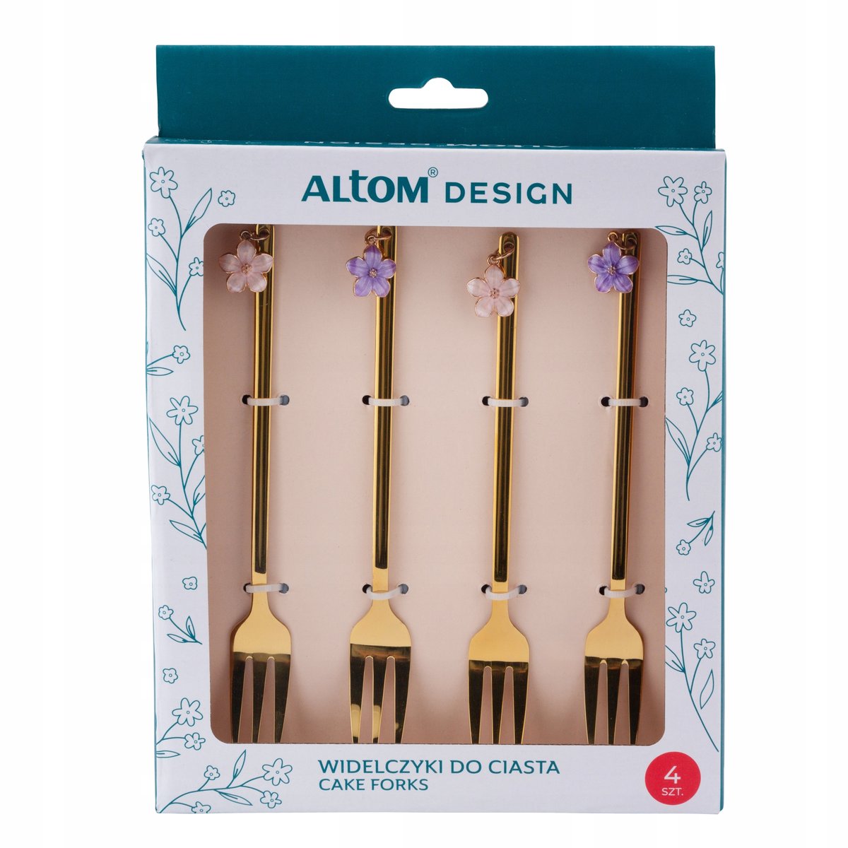 | Nazwa: | kpl. 4 widelczyków do ciasta w odcieniu złota z zawieszką kwiatek a color box |