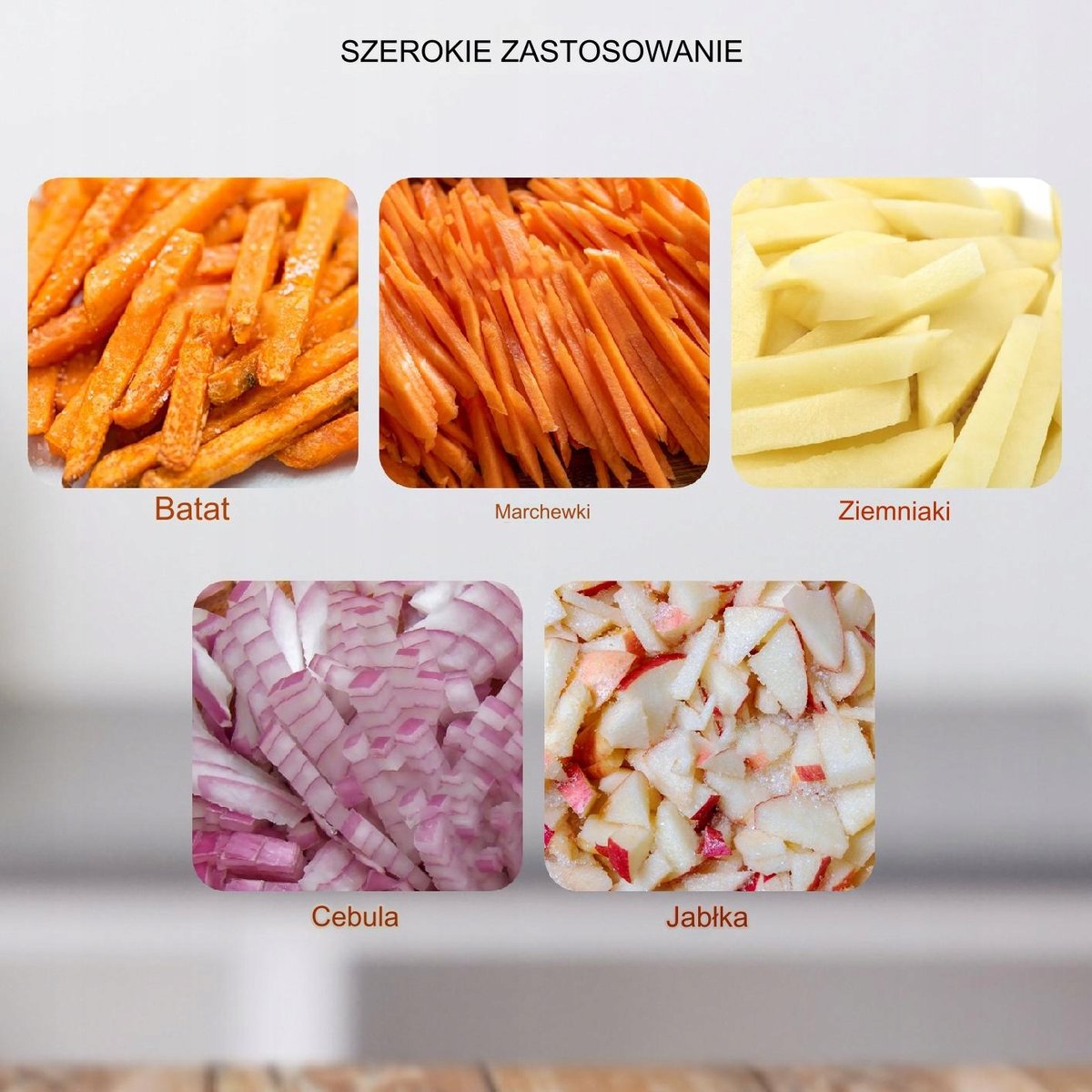 Krajalnica doskonale nadaje się do krojenia różnorodnych warzyw, owoców i ziemniaków, co czyni ją idealnym wyborem zarówno dla profesjonalistów, jak i amatorów. Można jej używać do przygotowania frytek, sałatek, zup i innych dań, wymagających precyzyjnie pokrojonych składników.