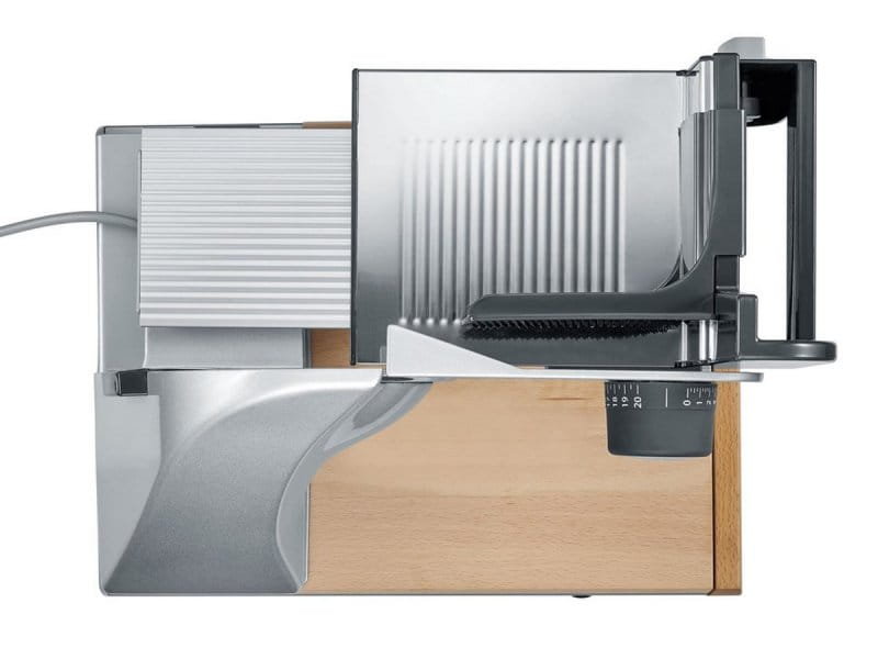 Krajalnica Graef SKS 850 to inne spojrzenie na praktyczność podczas krojenia oraz piękno drewna bukowego, które połączyliśmy z metalową konstrukcją krajalnicy.