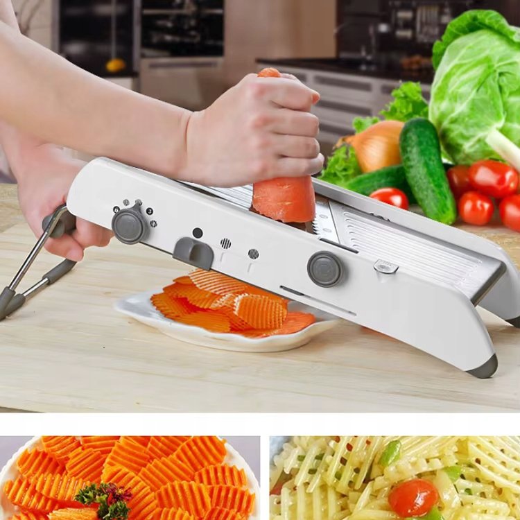 Wielofunkcyjna krajalnica, która ułatwi przygotowanie warzyw i owoców w idealnym kształcie! Posiada regulację grubości cięcia oraz możliwość krojenia w plasterki, słupki, a także z karbowaniem. Doskonale sprawdzi się do szatkowania kapusty, przygotowywania frytek z ziemniaków i wielu innych potraw. Solidna i wygodna w użyciu – niezastąpiona w każdej kuchni!