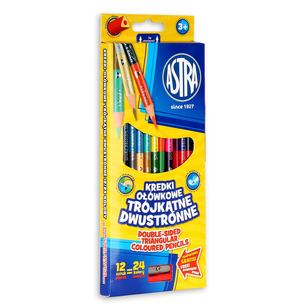 | Nazwa: | Kredki ołówkowe trójkątne dwustronne Astra 12 sztuk, 24 kolory |