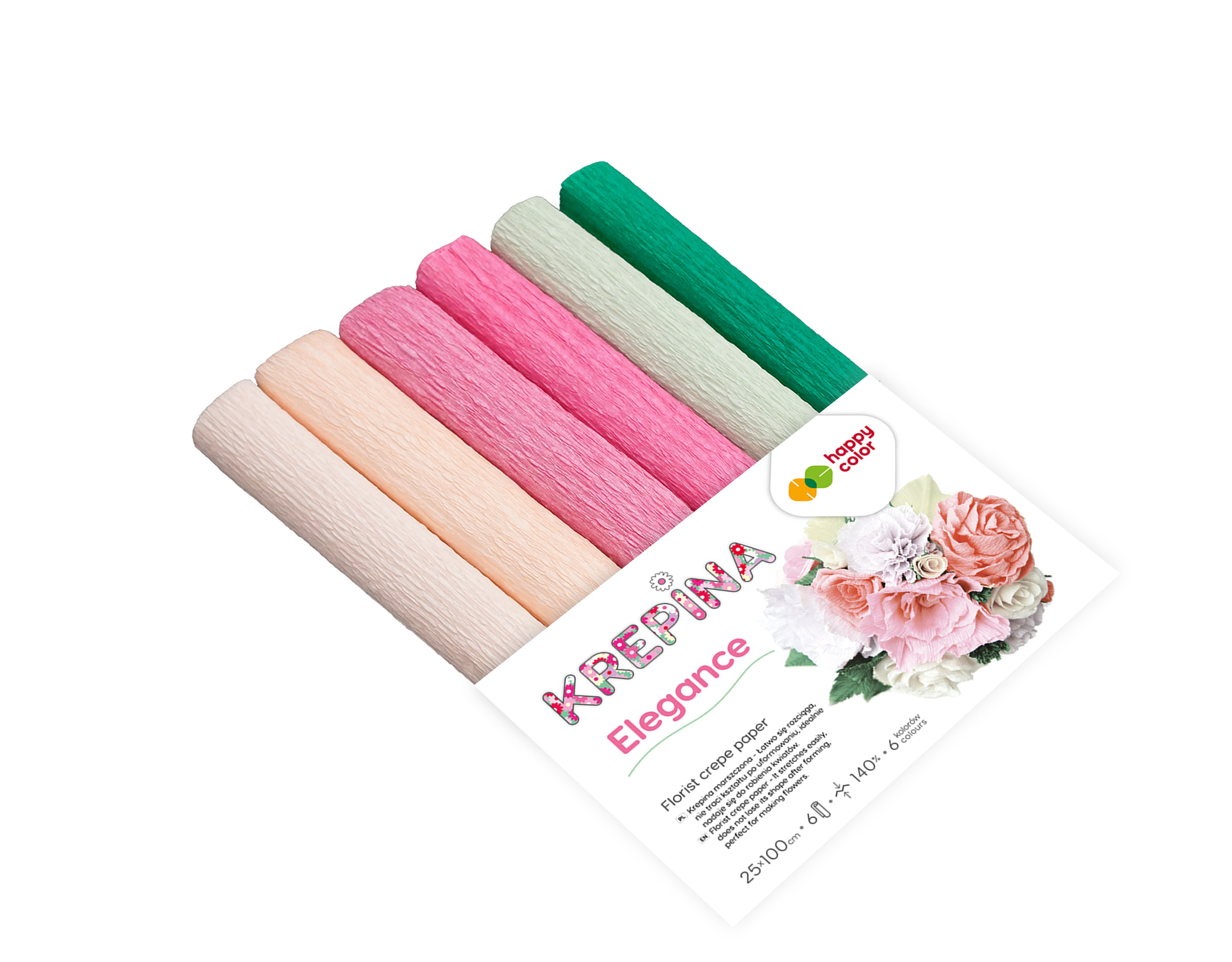Nazwa: Krepina marszczona 25x100cm, MIX Elegance - 6 kolorów, 6 rolek, Happy Color